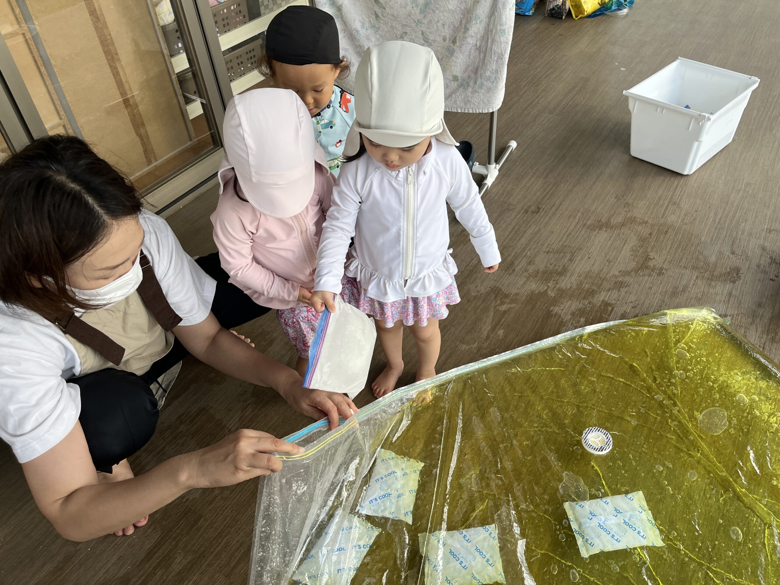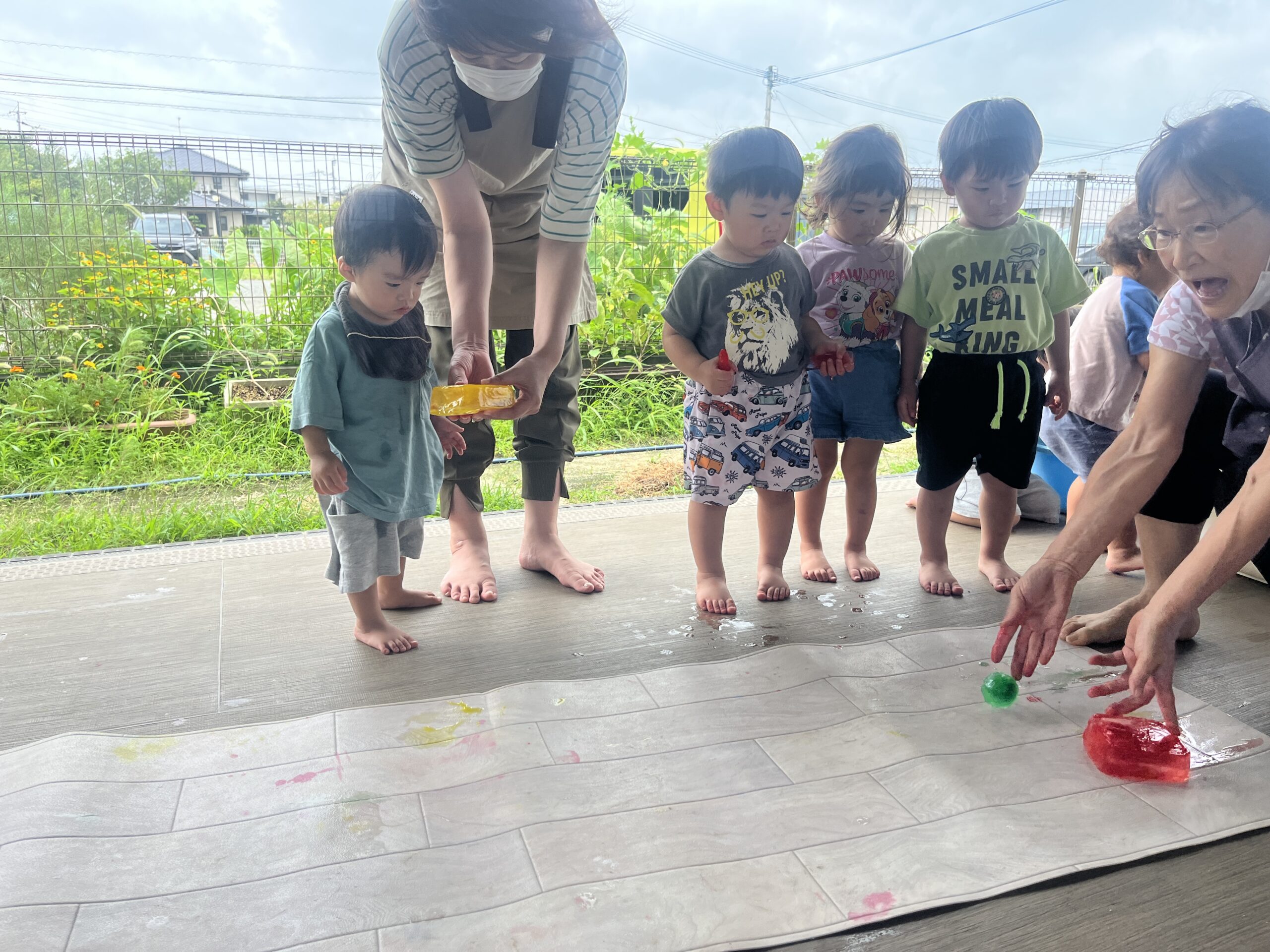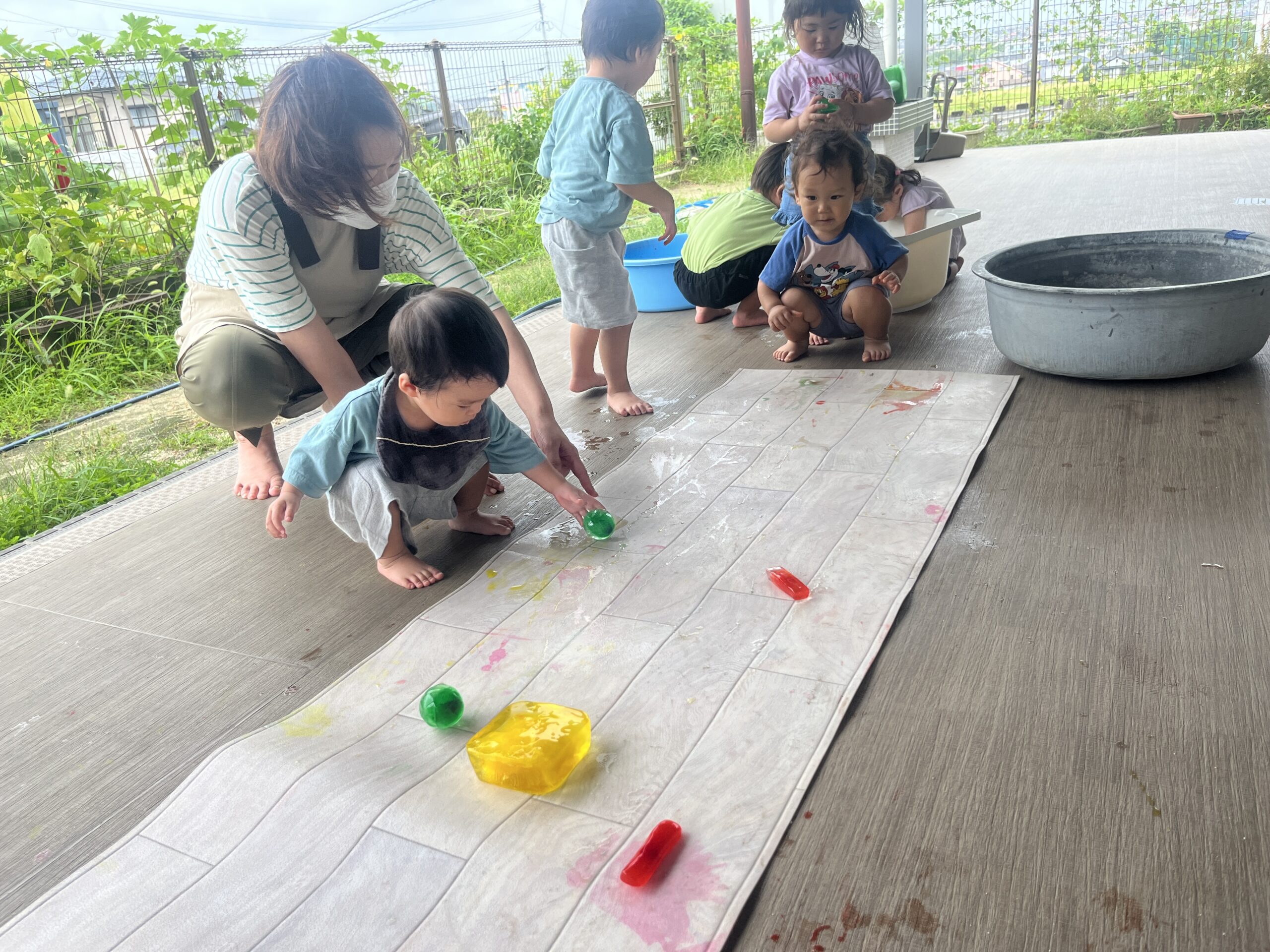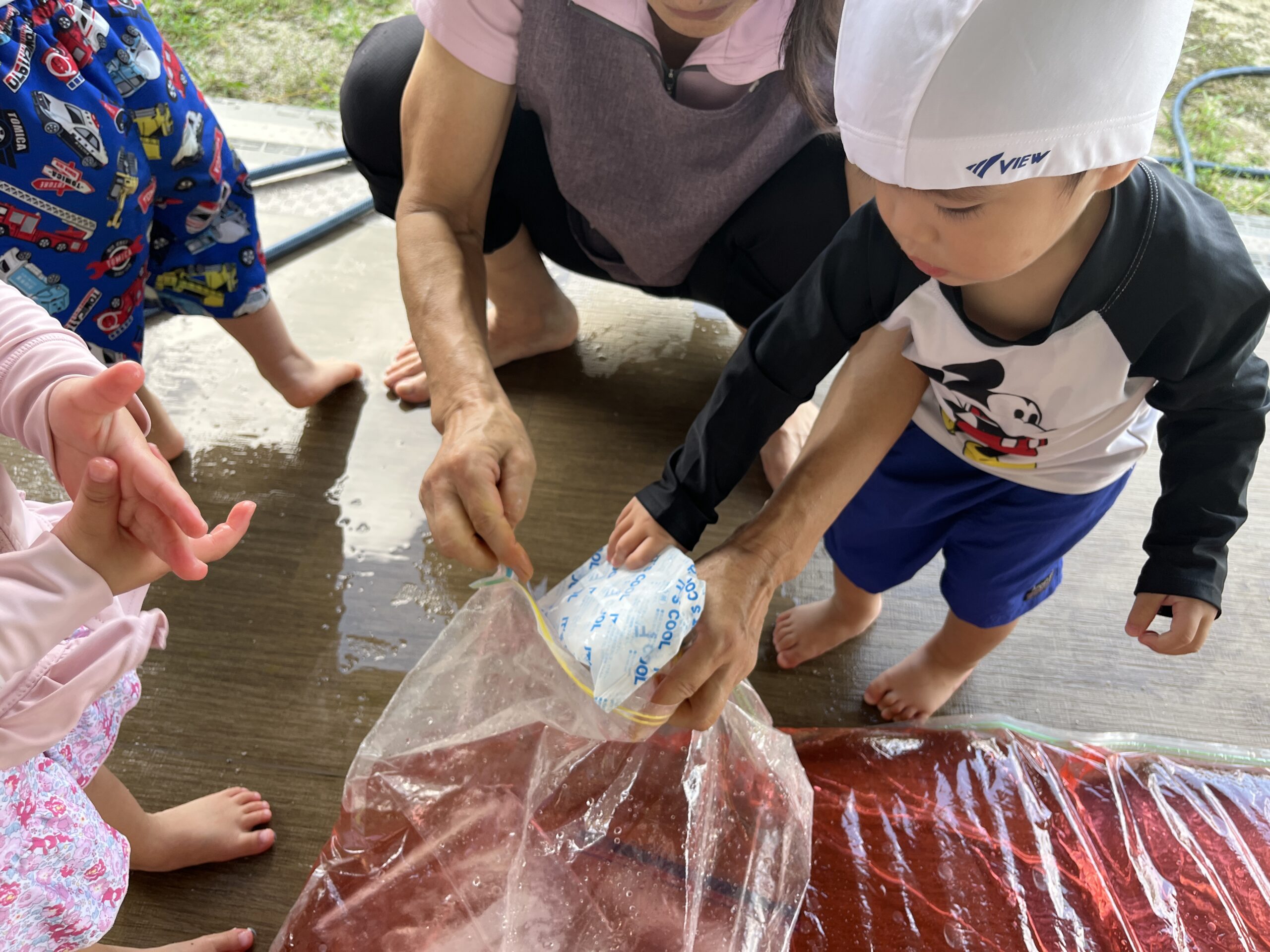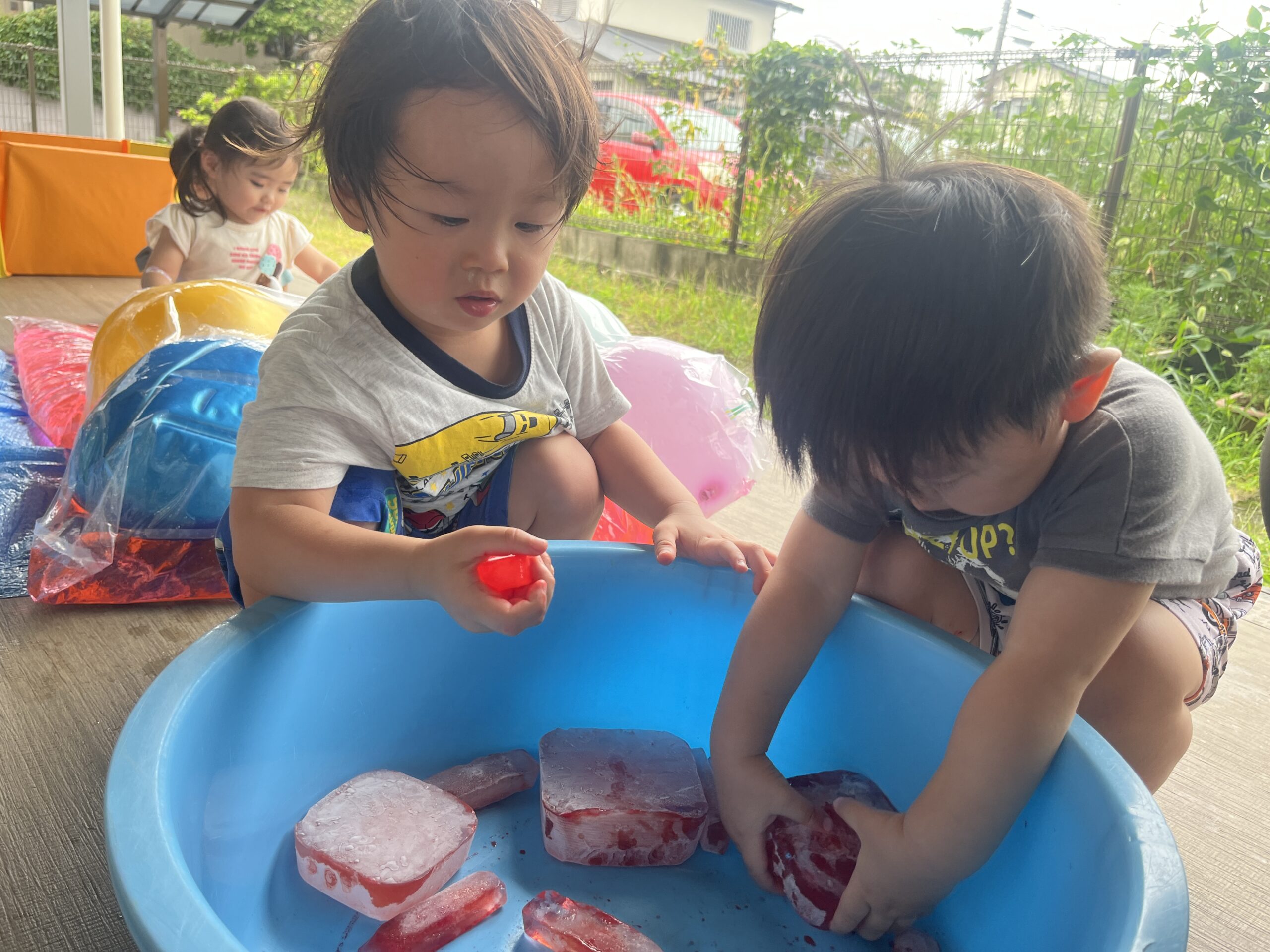 猛暑が続く中、氷や色水で沢山遊びました🧊