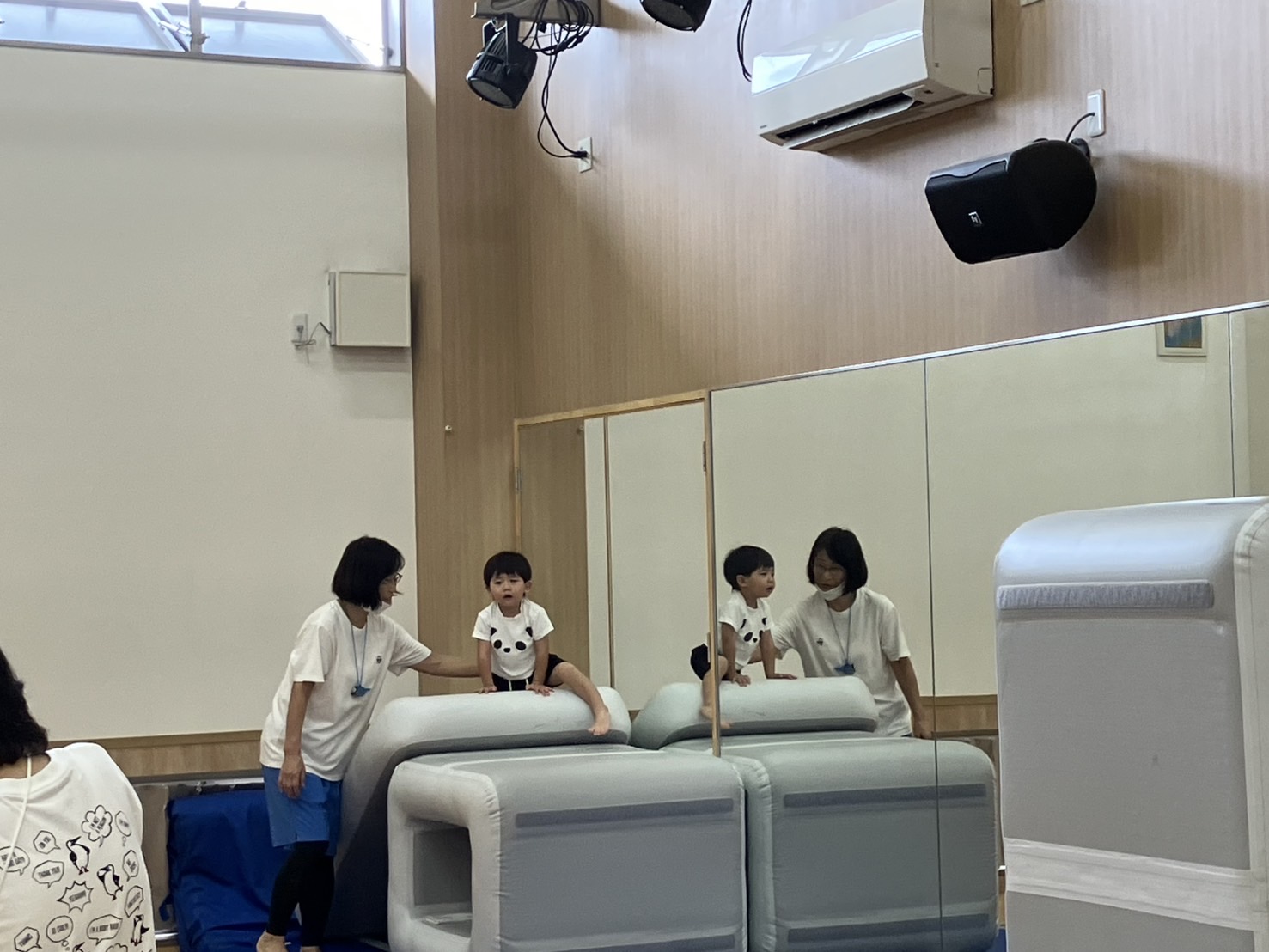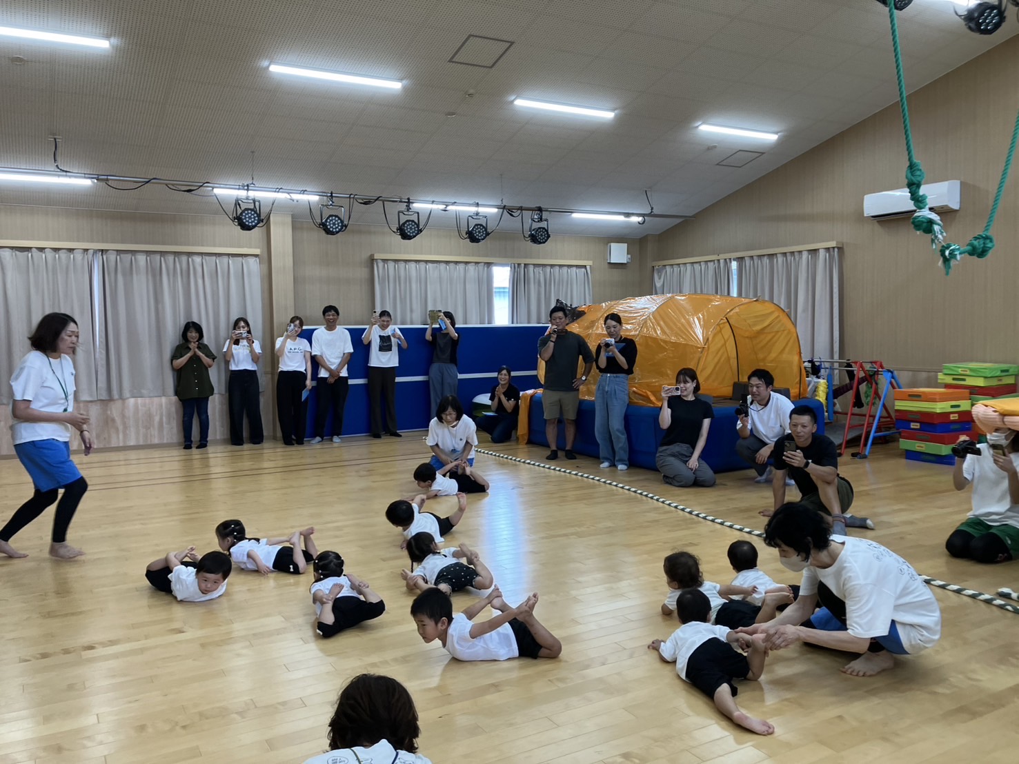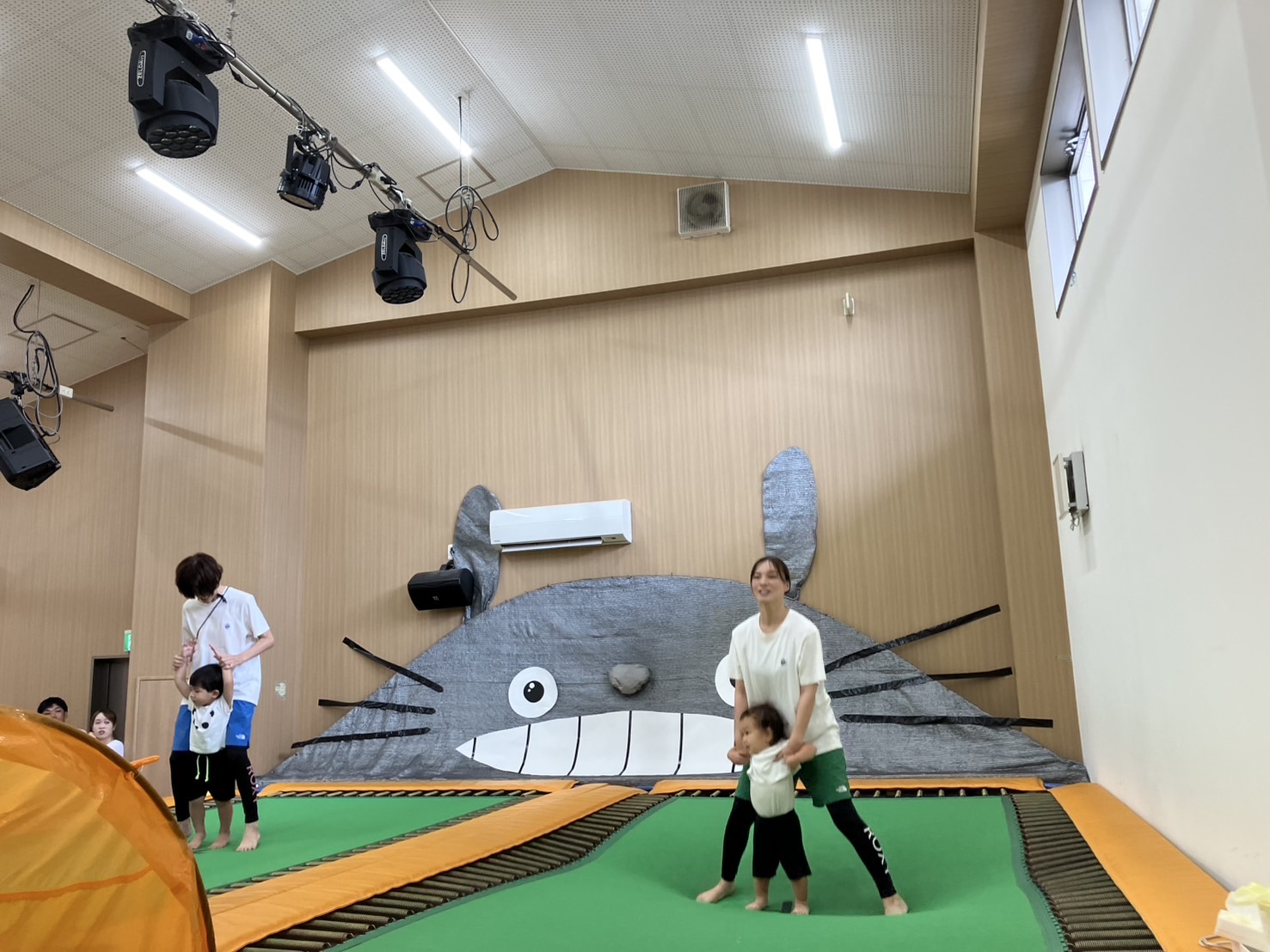 『ジブリでリズム』トトロの曲でリズム運動をしました🎶カメのポーズ、足を掴んでしっかりと顔を上げてますね!