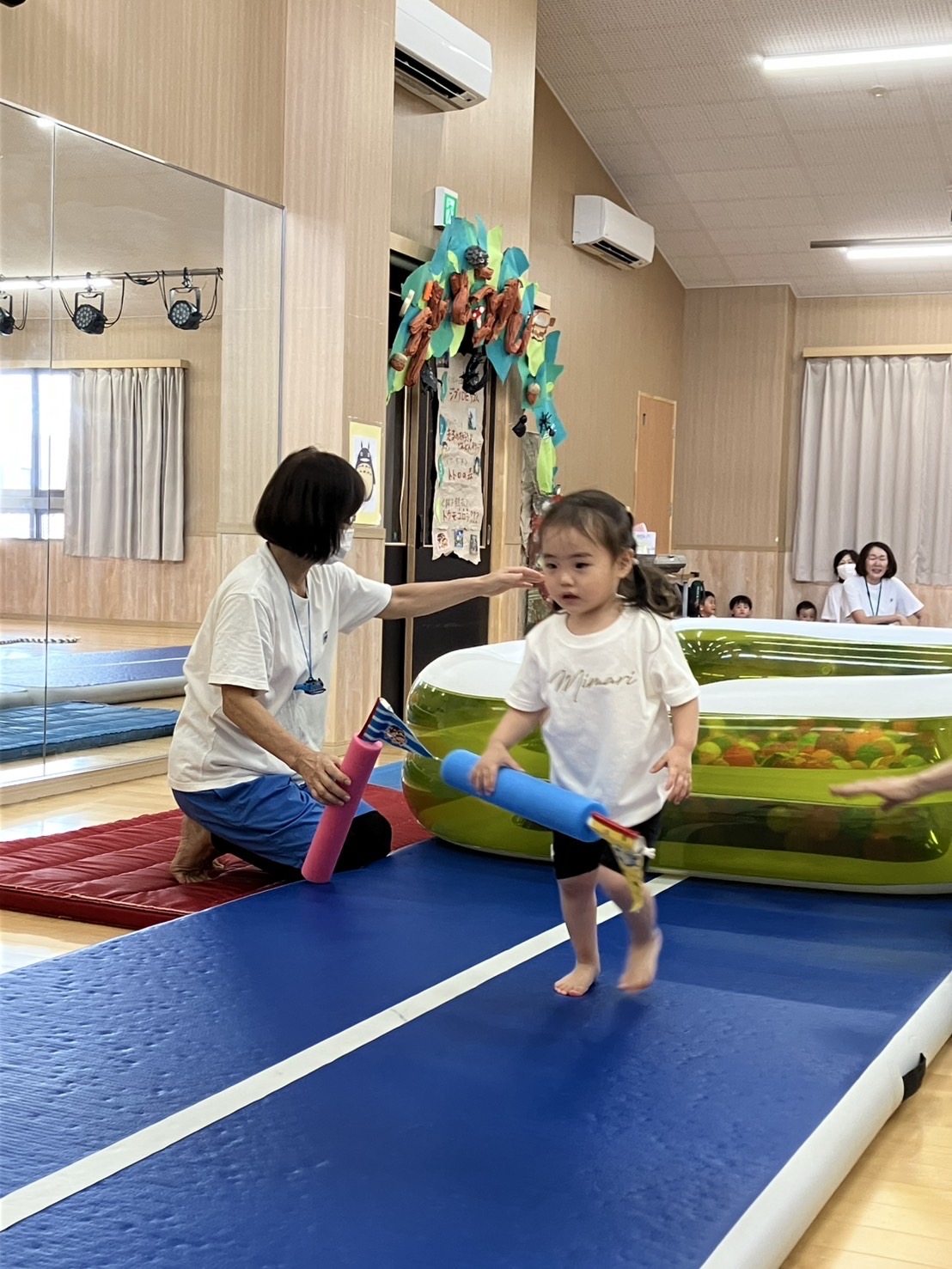 帰りは『ビーチフラッグ競争🚩』ゆめ組さんも頑張ってプールを越えてますよ!