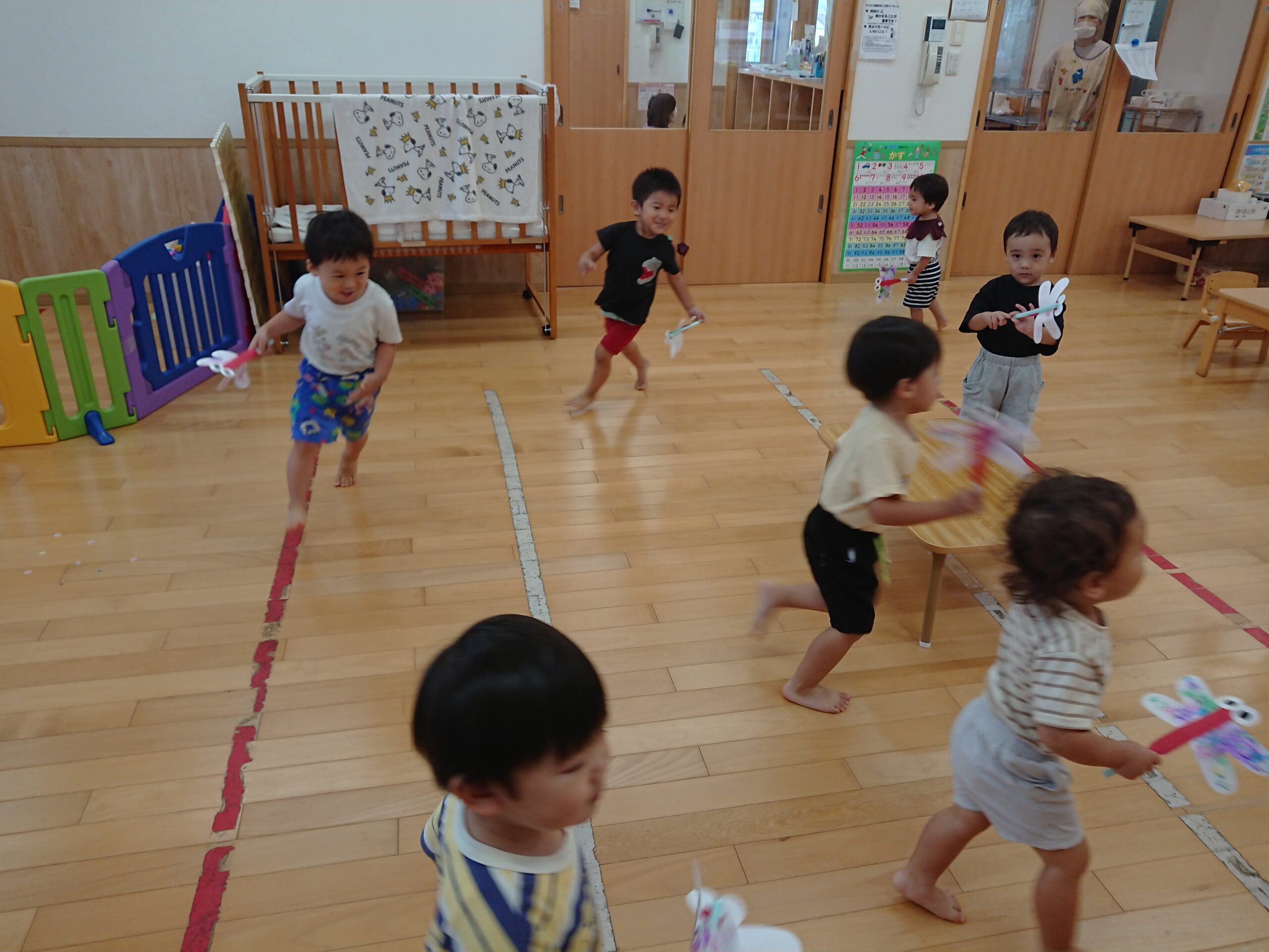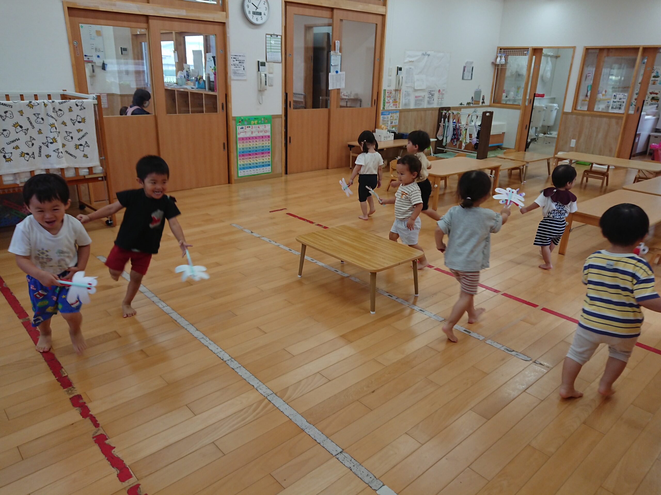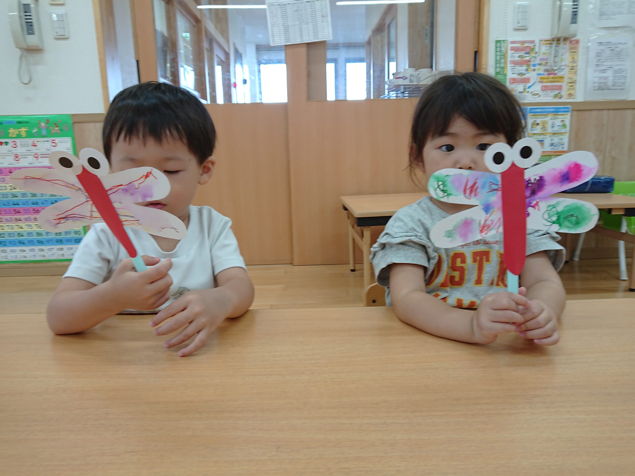 ようやく秋らしい気候になってきました。園のお庭にもコスモスが咲きトンボが遊びに来てくれています。