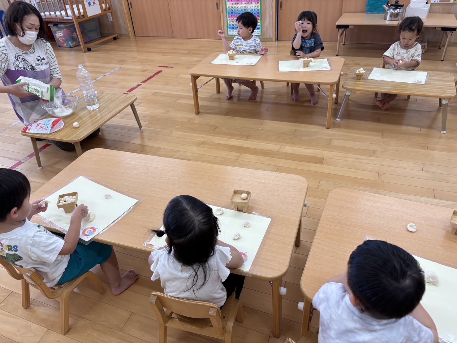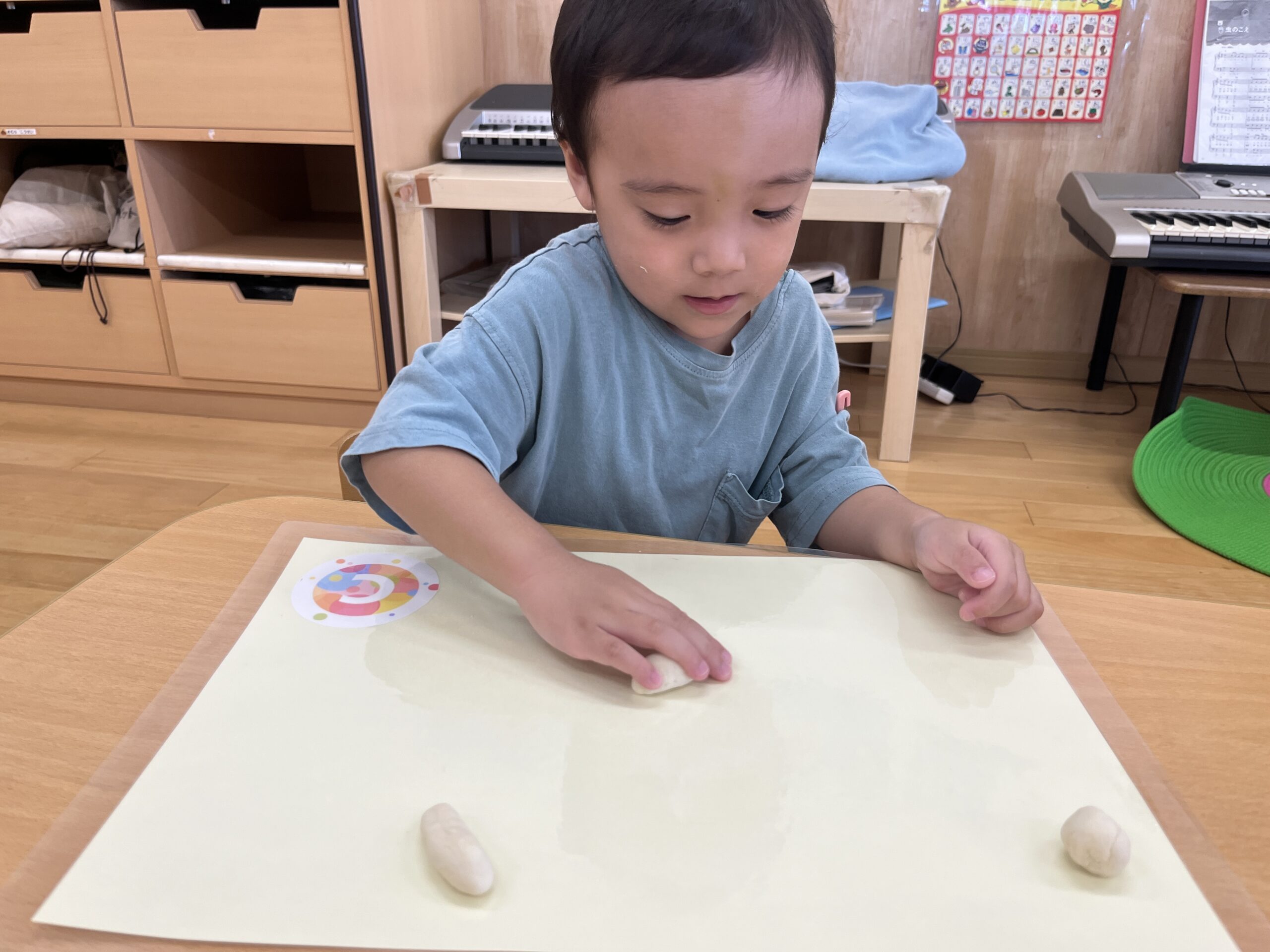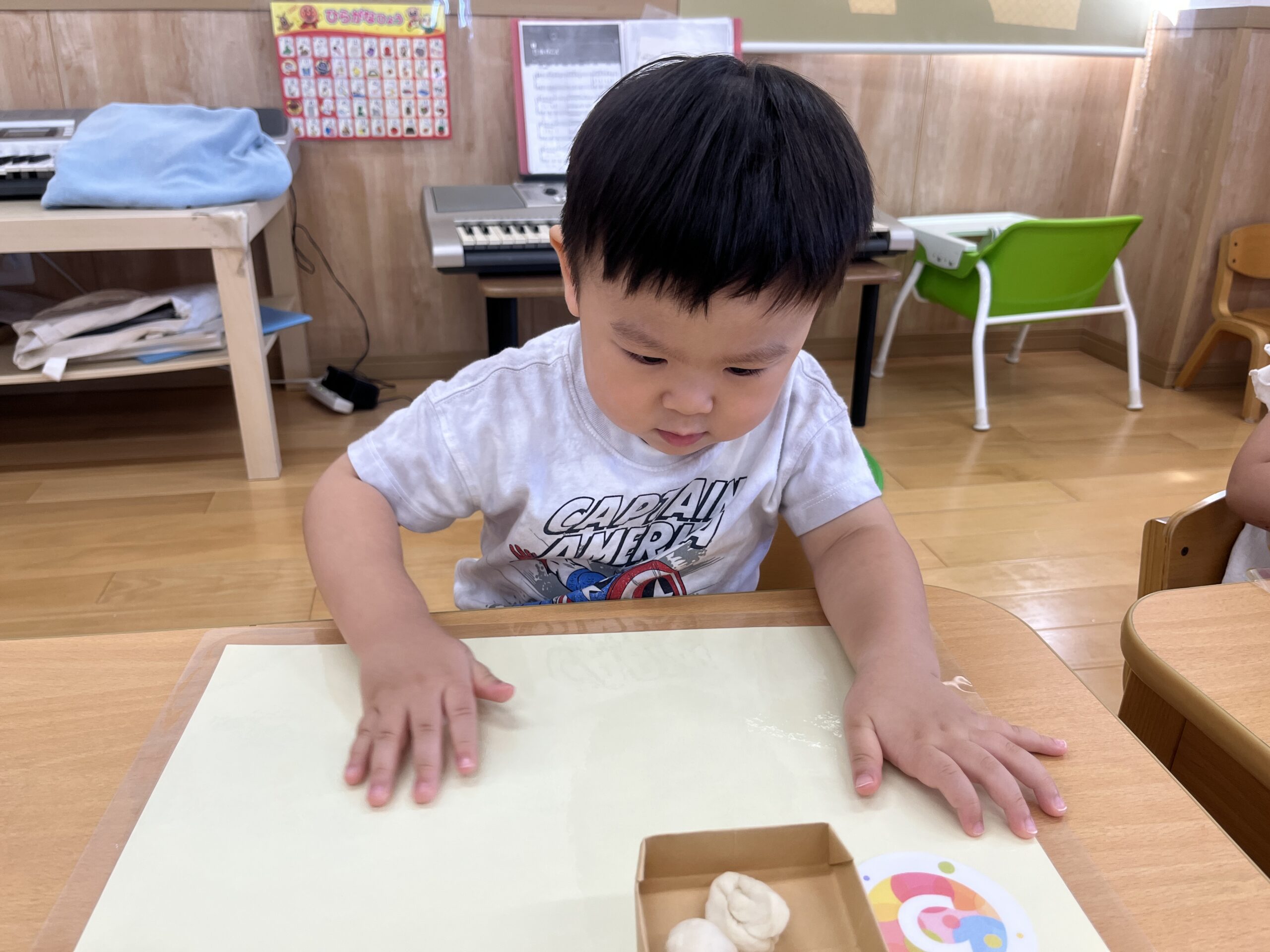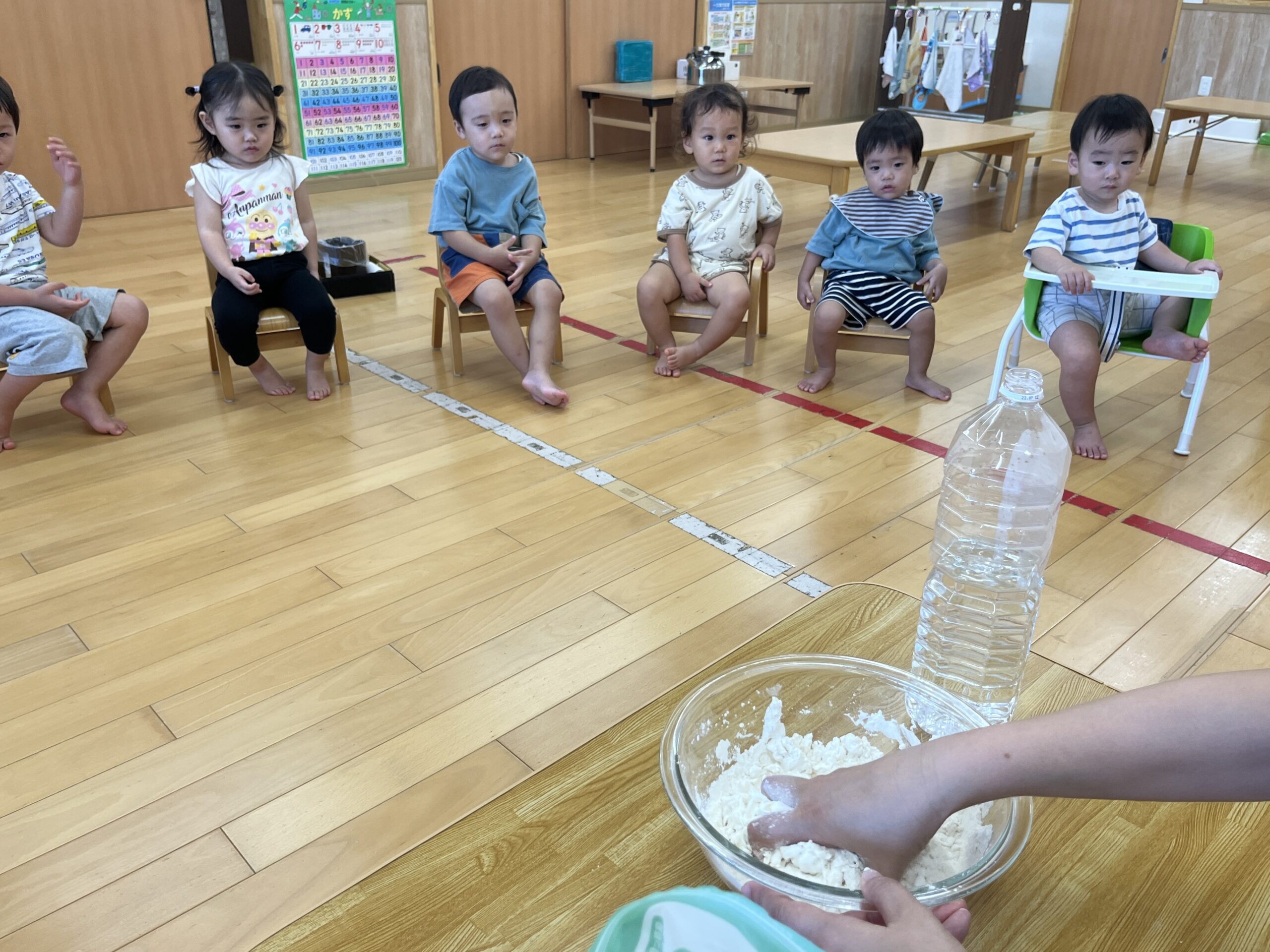 コネコネ~して…水を加減しながら耳たぶ程の柔らかさにしていきます。みんな興味津々です🌝
