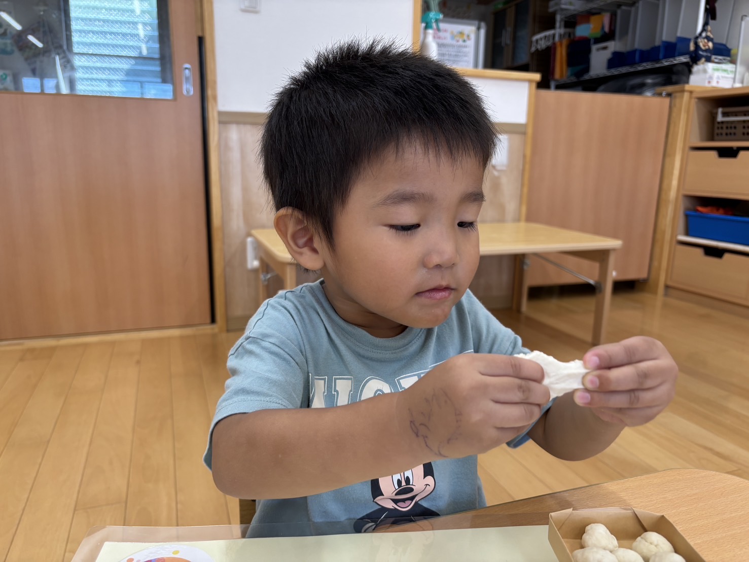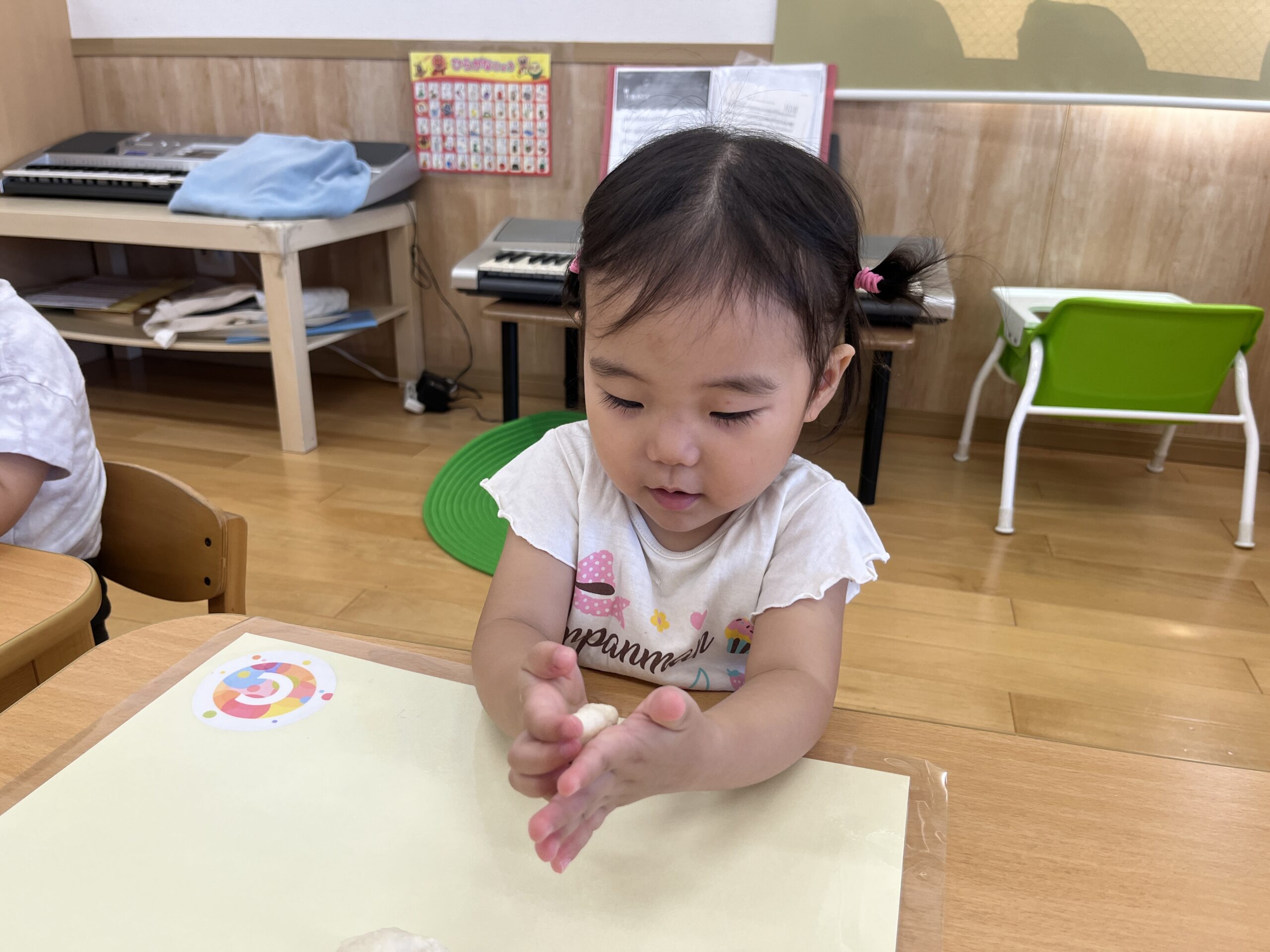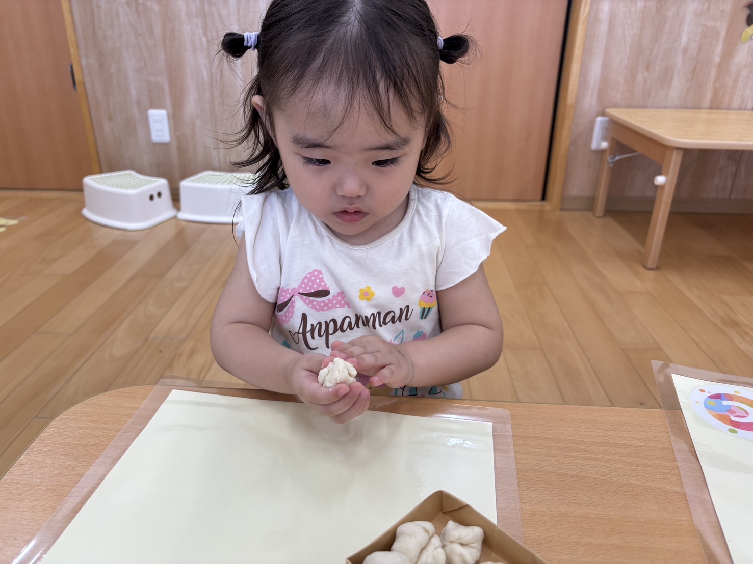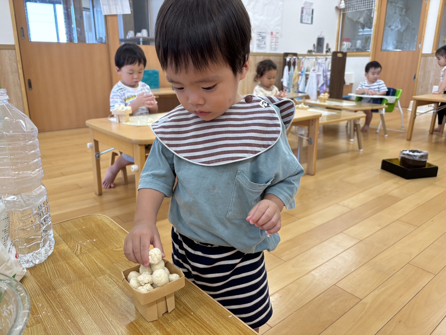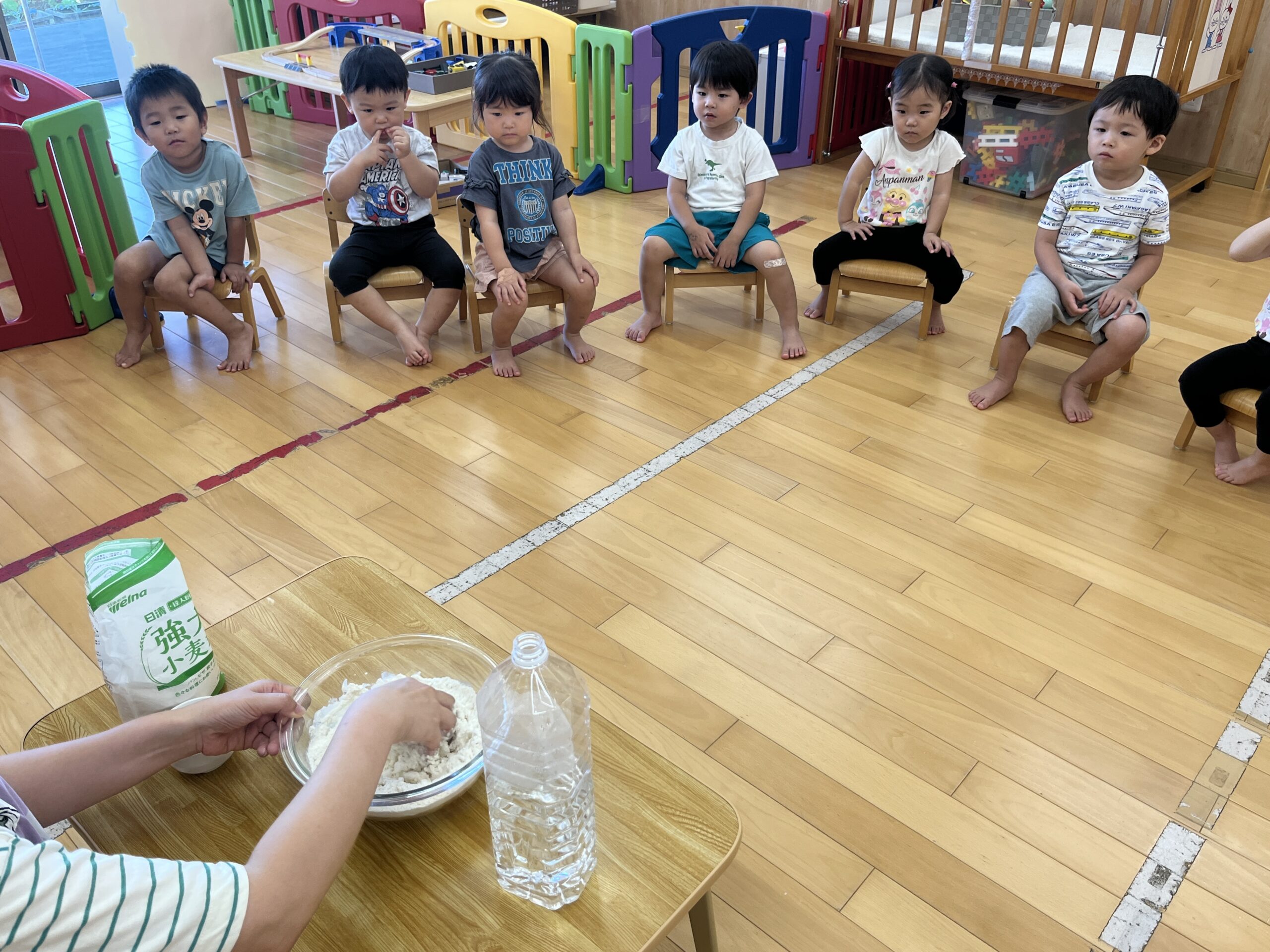 コネコネ~して…水を加減しながら耳たぶ程の柔らかさにしていきます。みんな興味津々です🌝