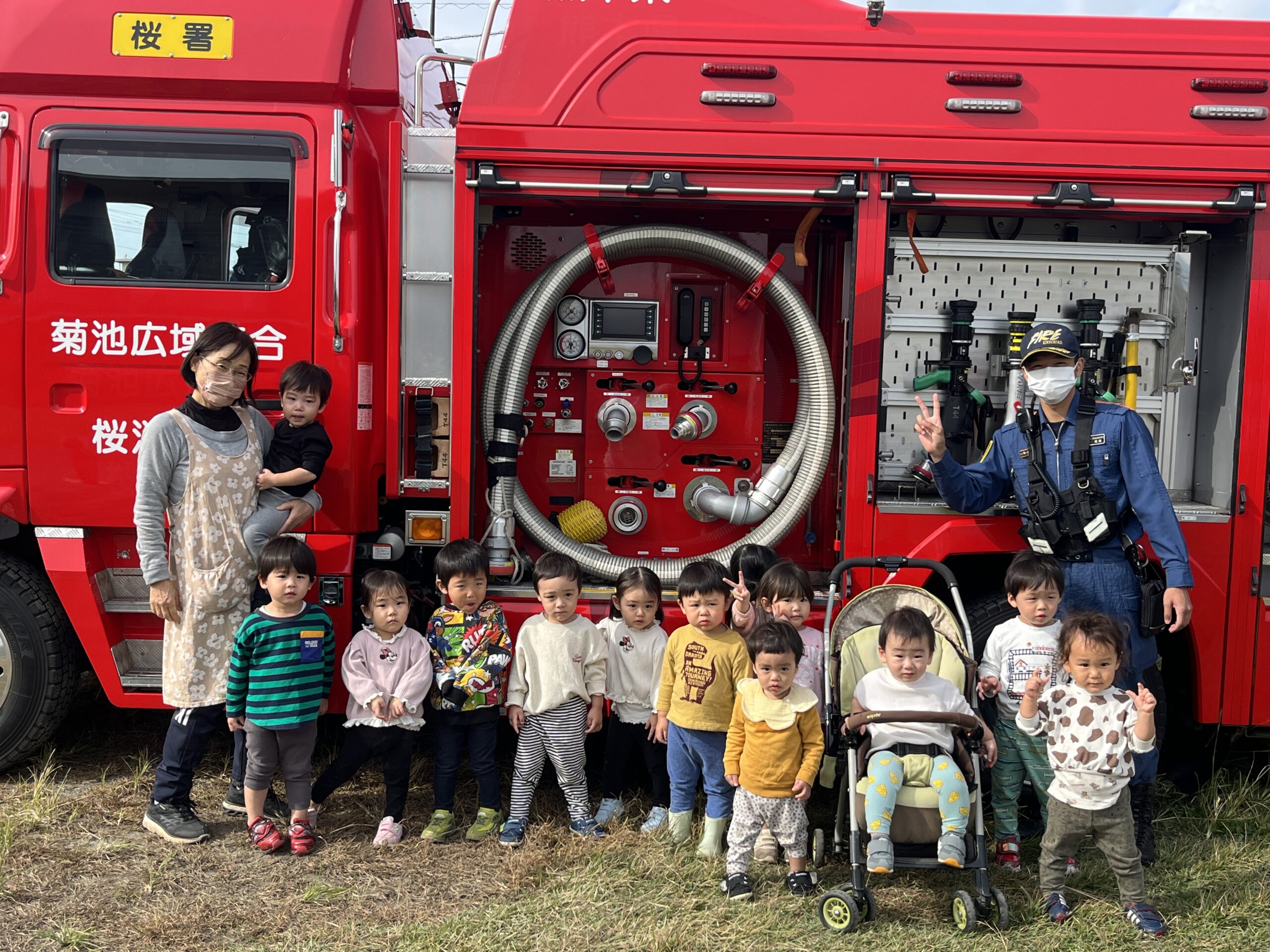 大きくなったら消防士なりたいお友だちが増えました🧑🚒桜消防署の隊員の皆様ありがとうございました<(_ _)>