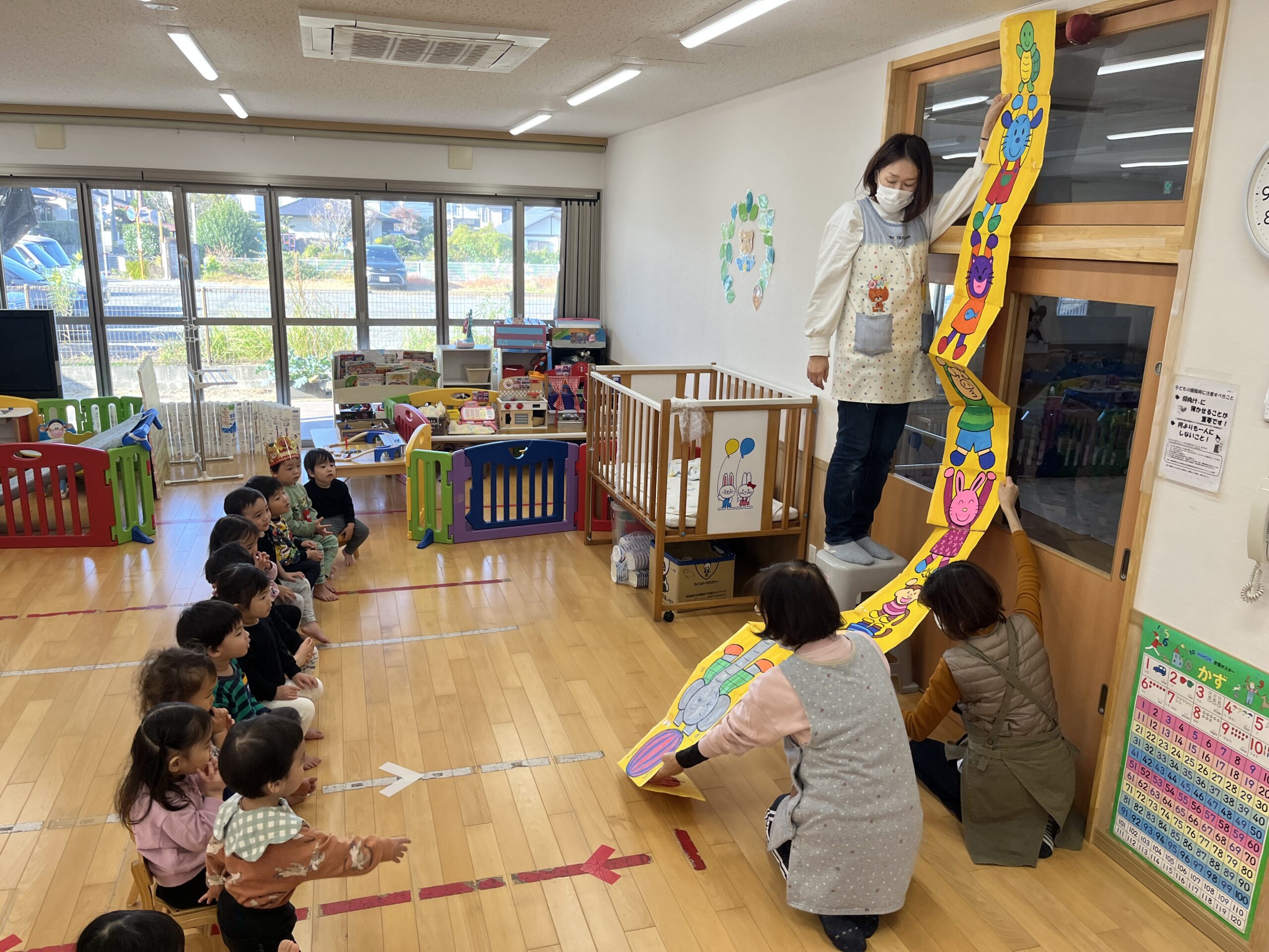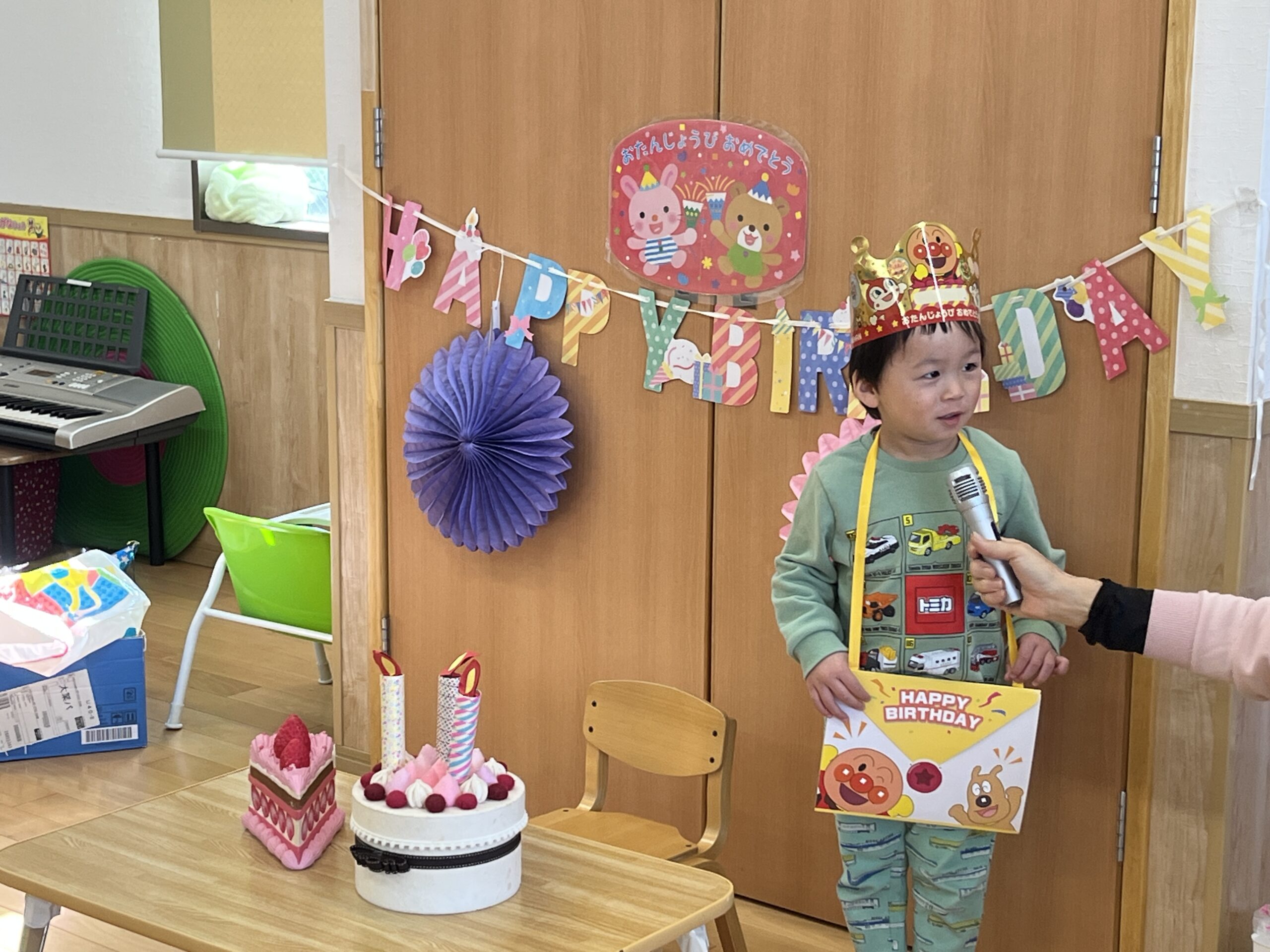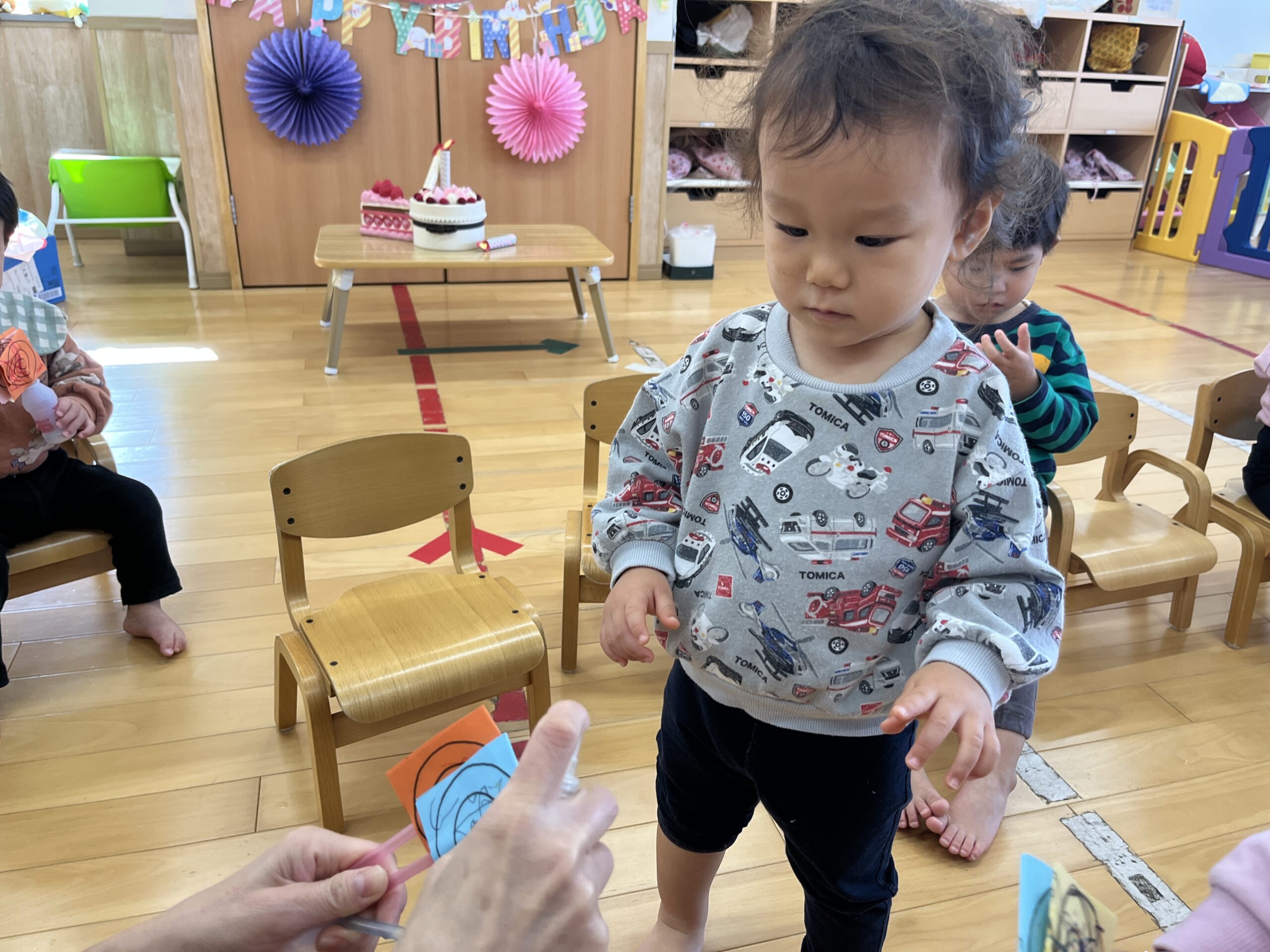 11月生まれの誕生会がありました。踏切と電車が大好きな3歳の男の子です🚃