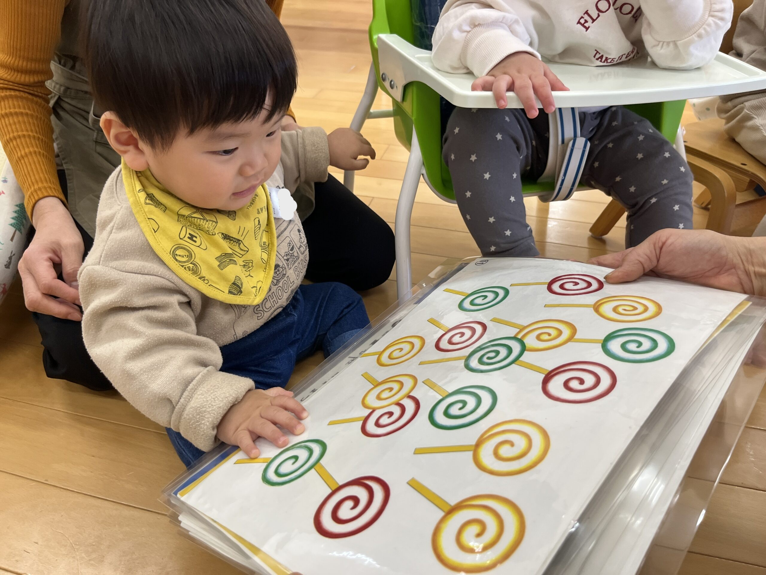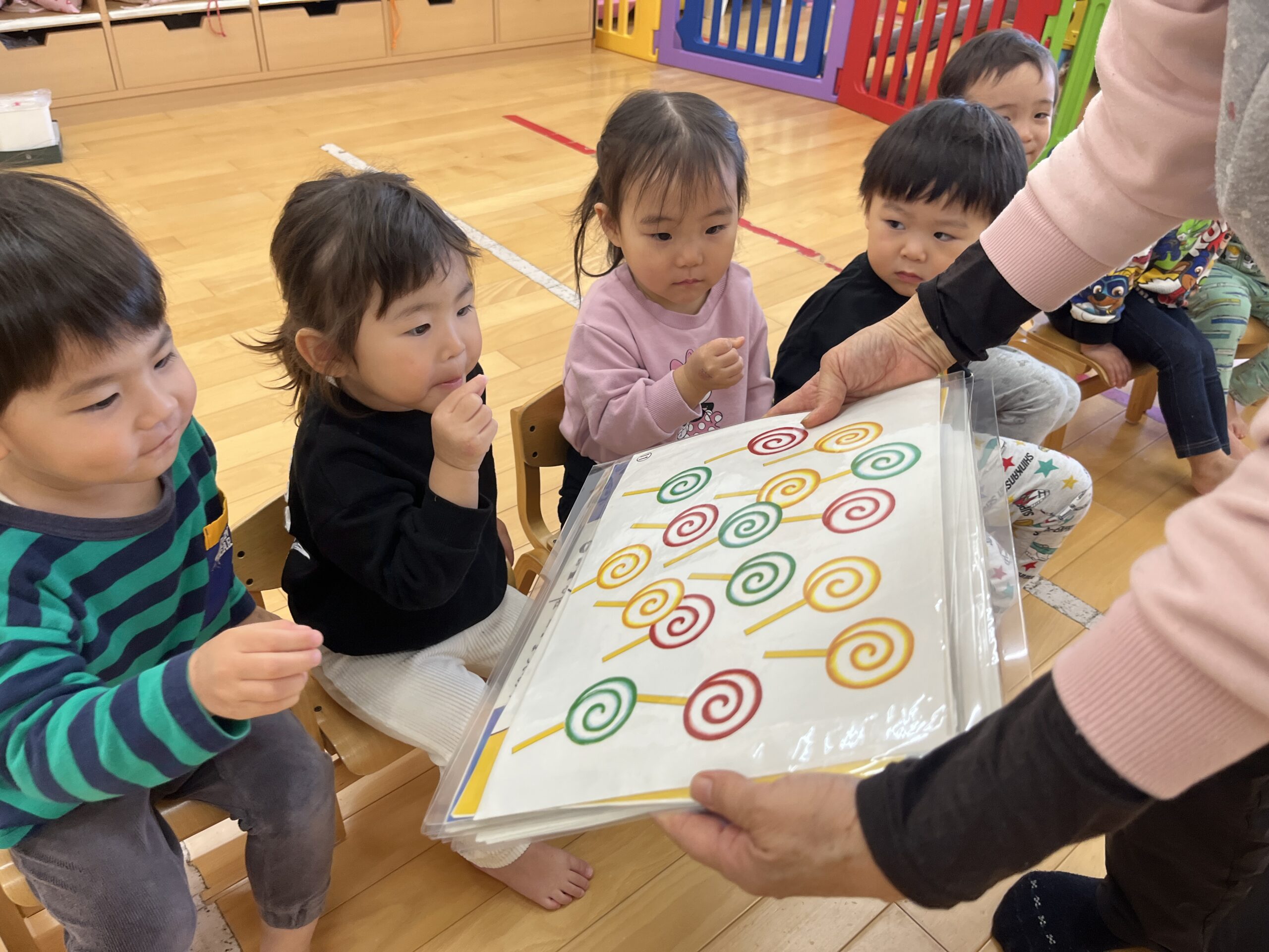 香りをかいだり、食べる真似をしたりと楽しんでいた子ども達でした🍭