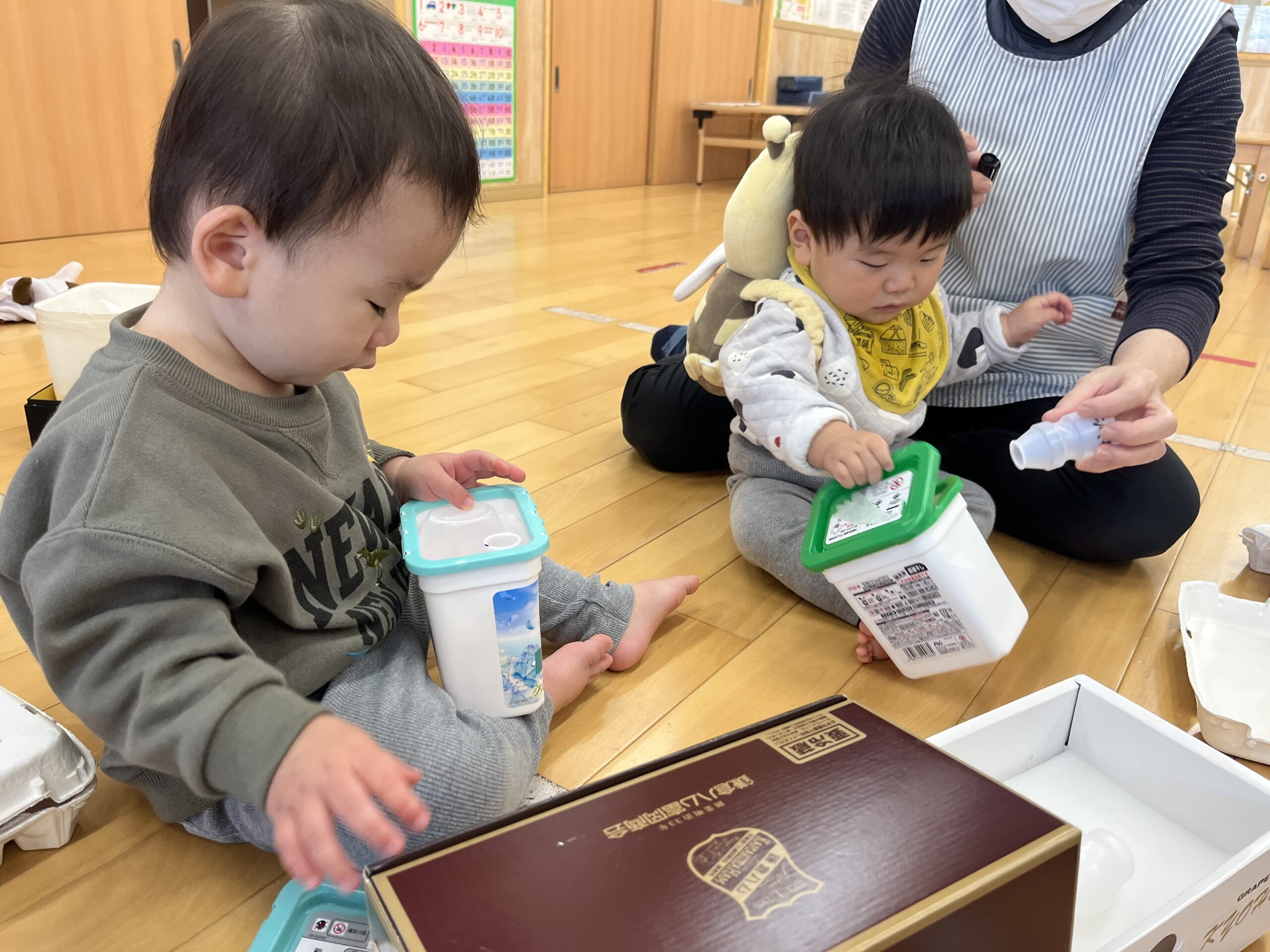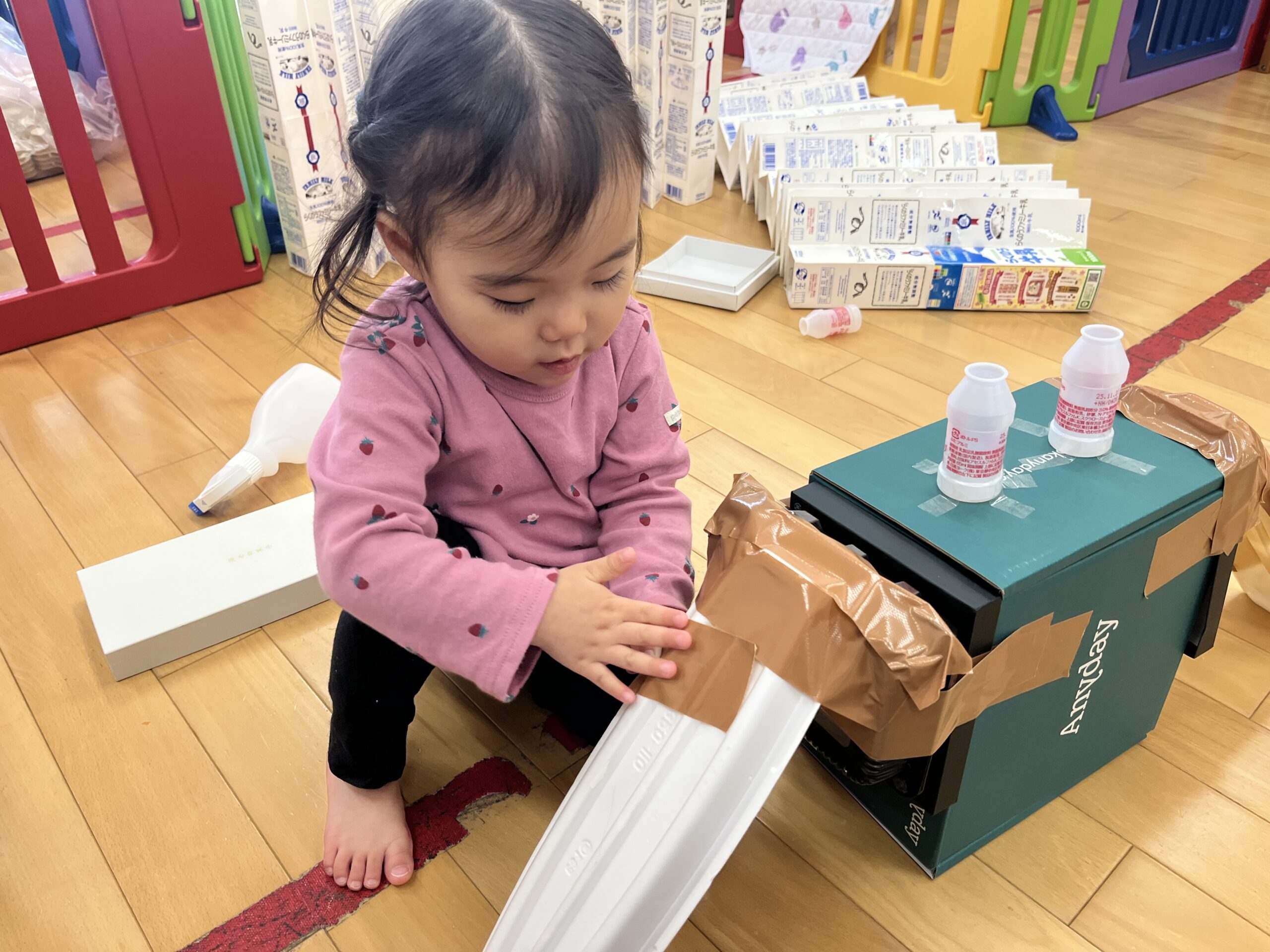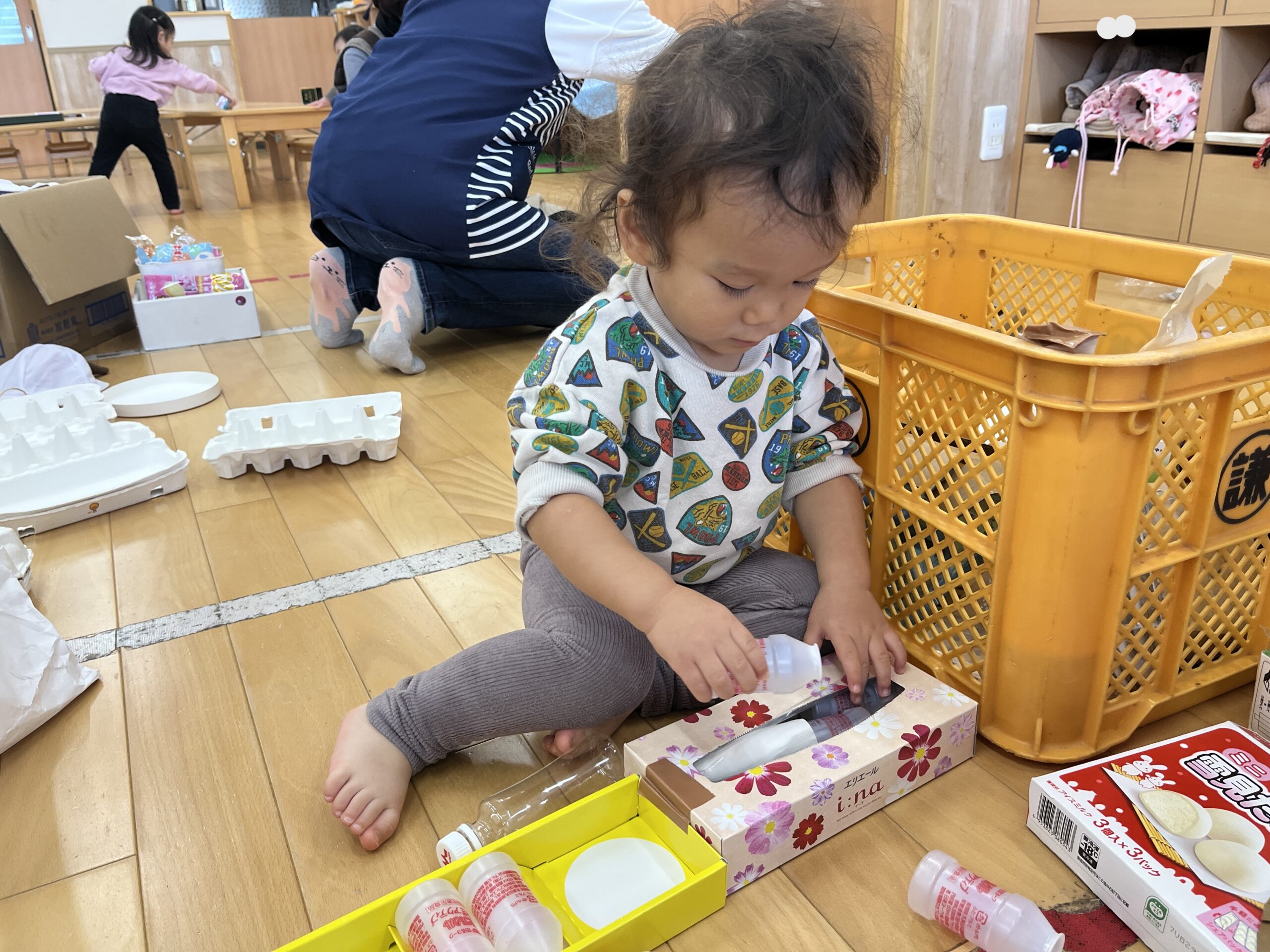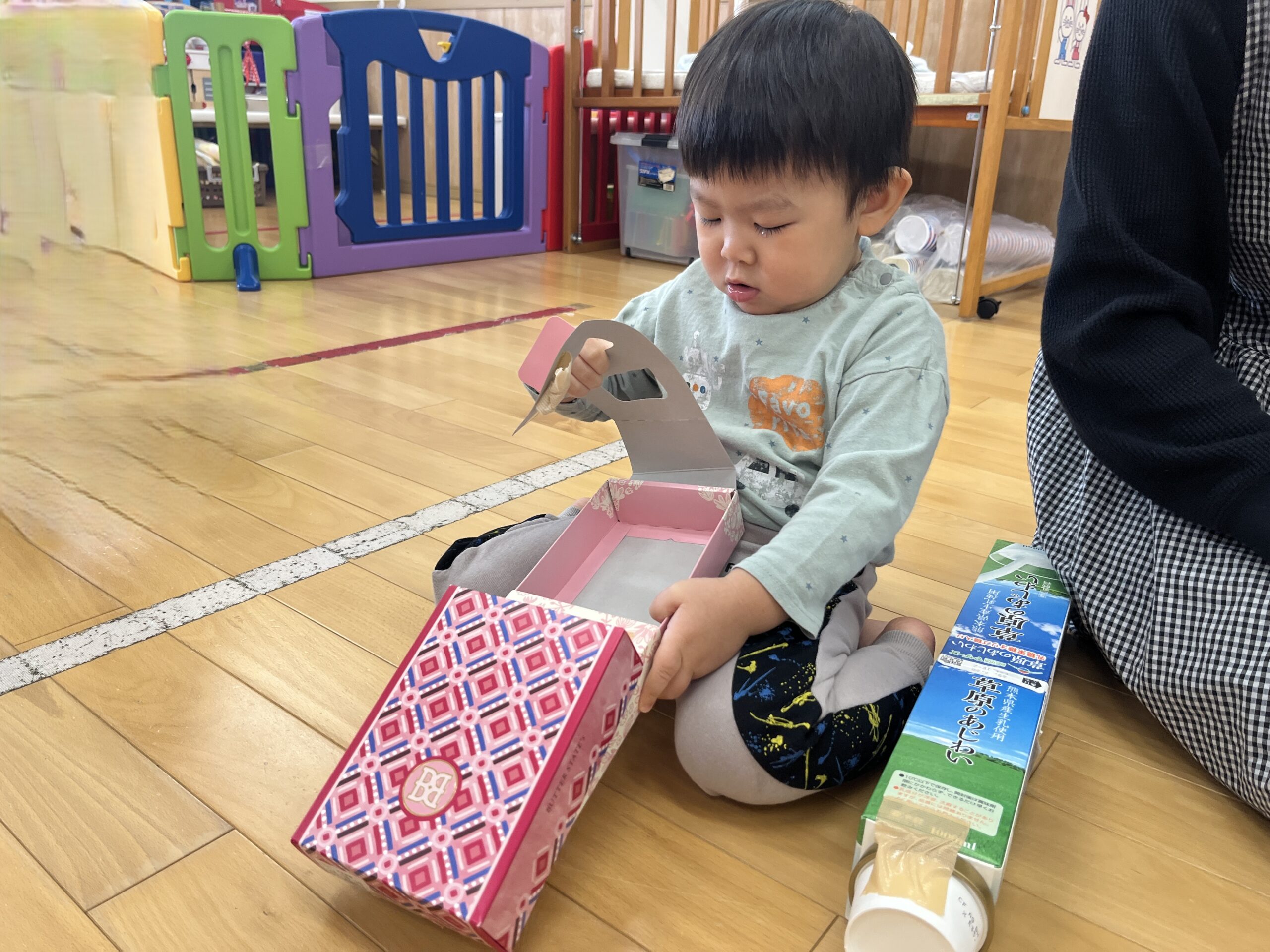 お気に入りの箱や容器を組み立てていきます くっつけるのは先生たちもお手伝いしてくれましたよ
