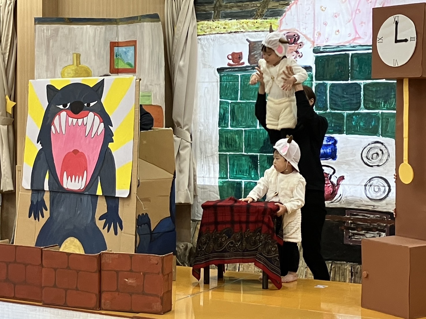 プログラム3番は1,2歳児さんの劇遊び! 『オオカミと7匹の子ヤギ』