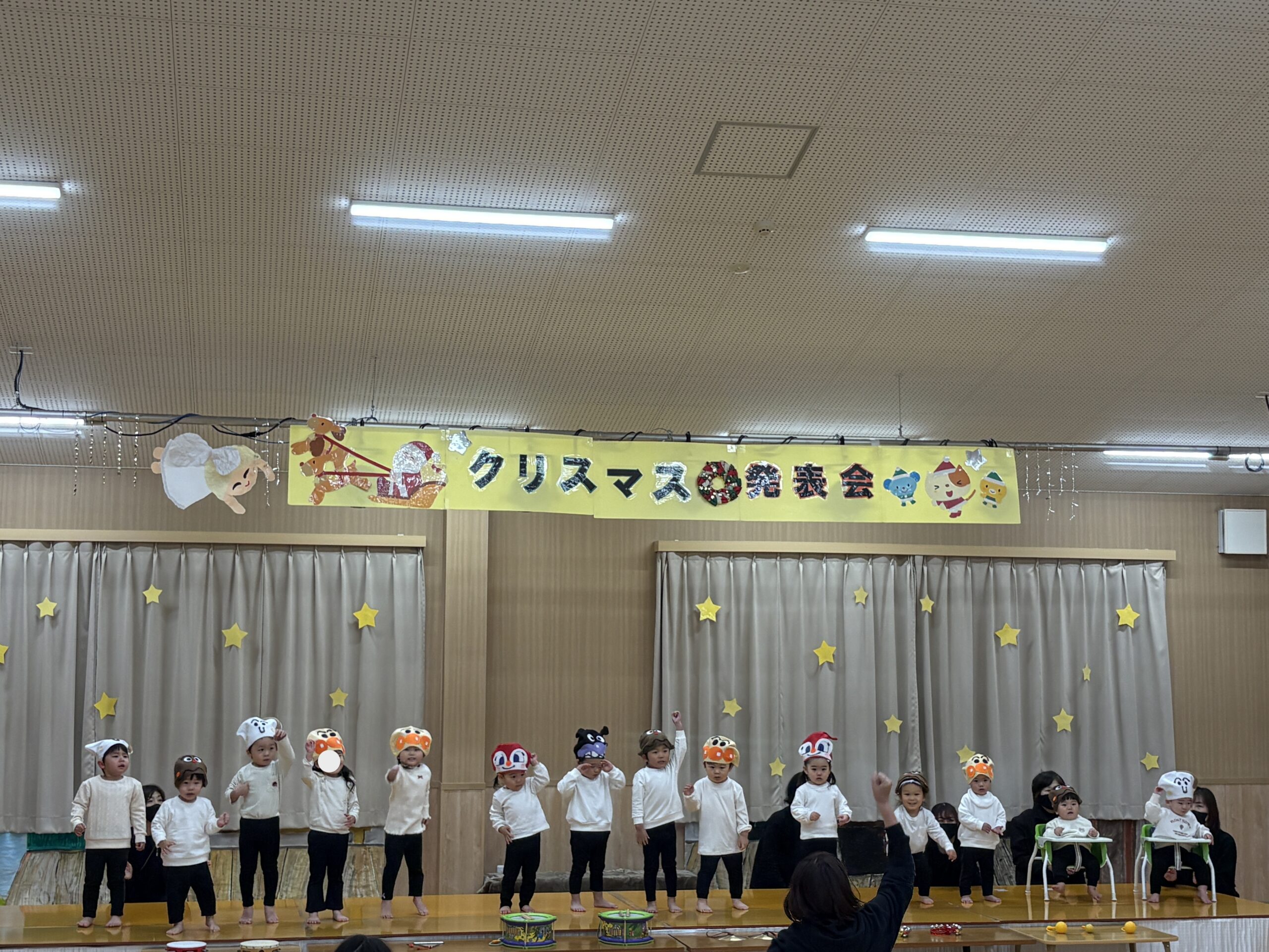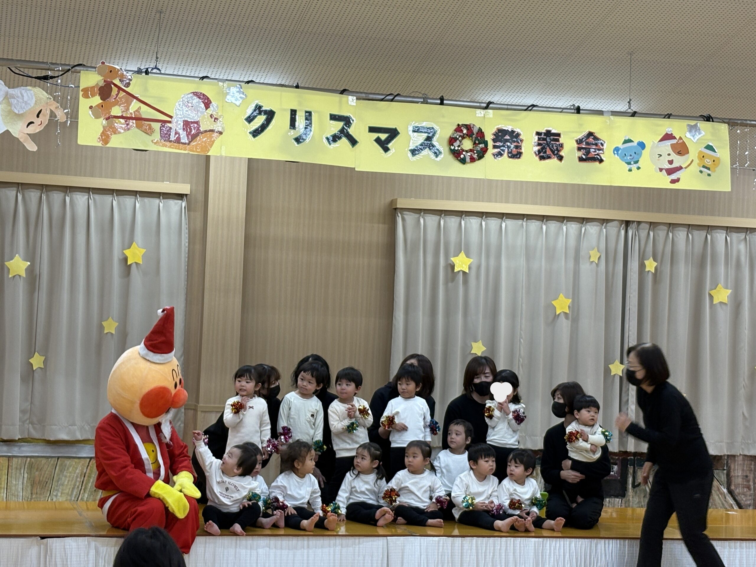 そして鈴の音と共にプレゼントを持ってアンパンマンサンタの登場です🎅