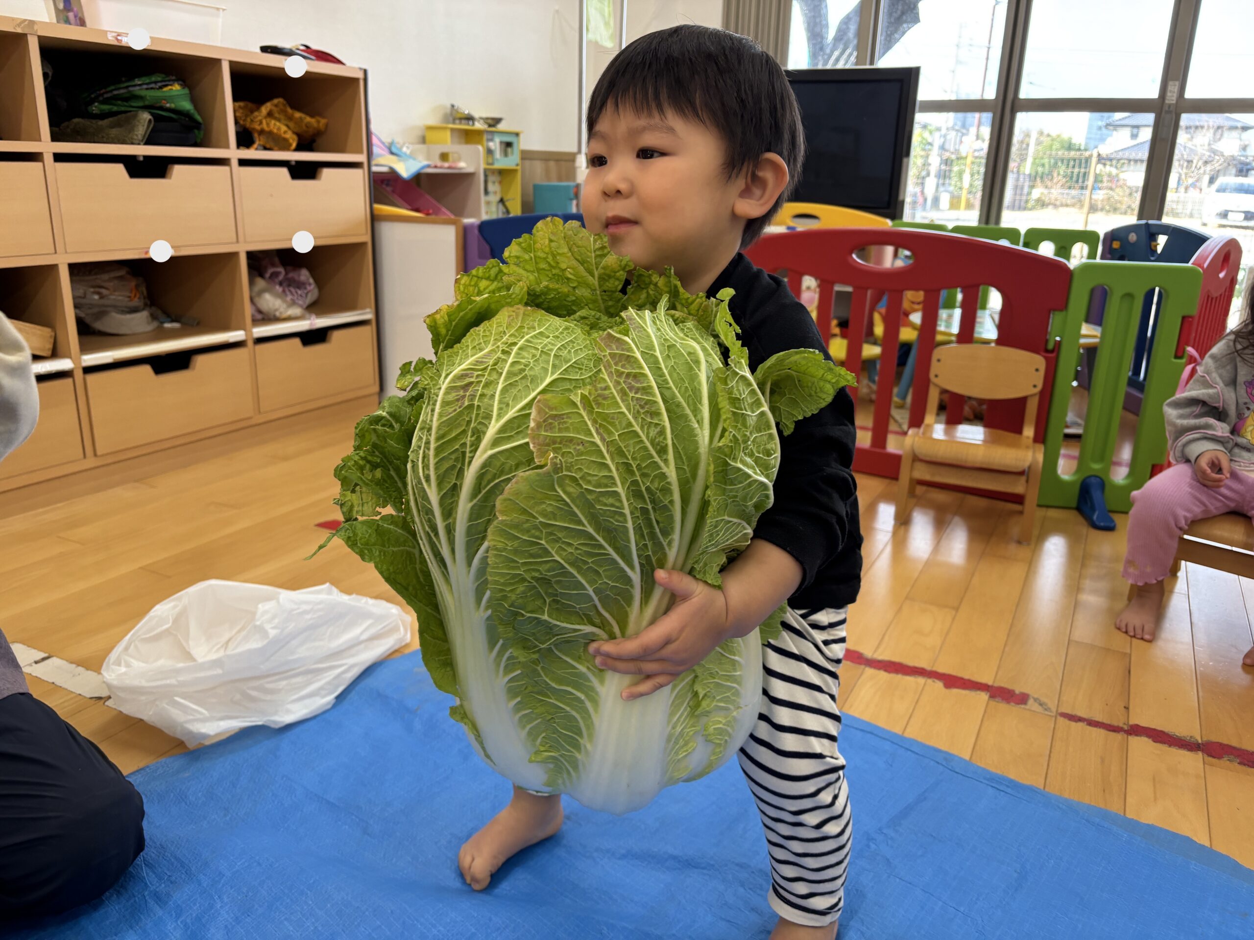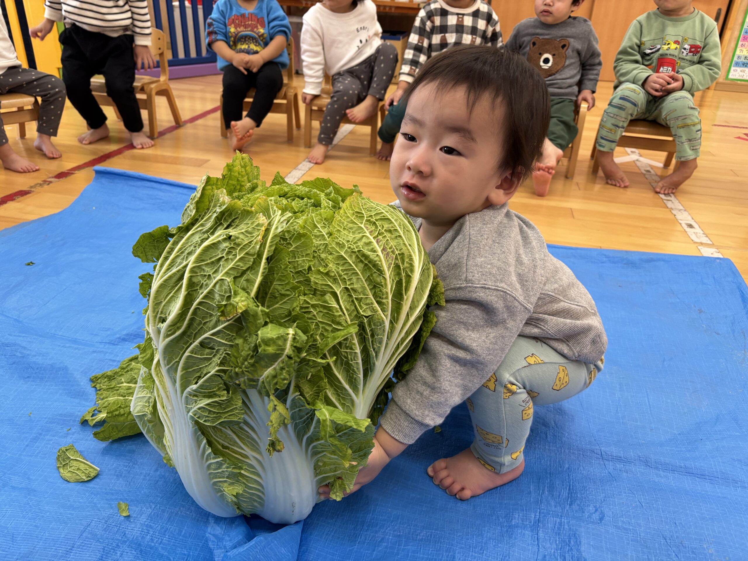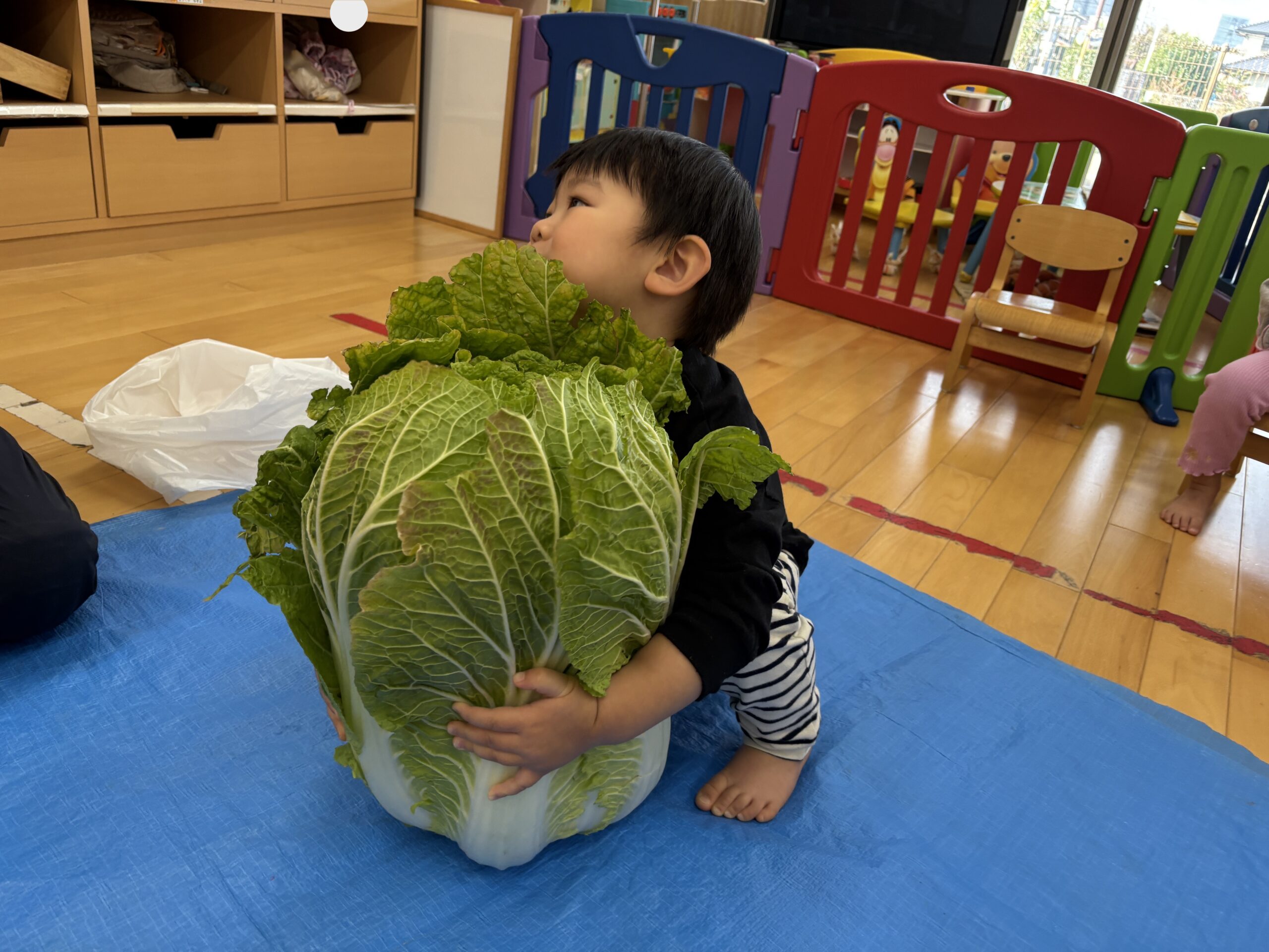 ぼくと同じくらいの大きな白菜!びっくりしたね😭