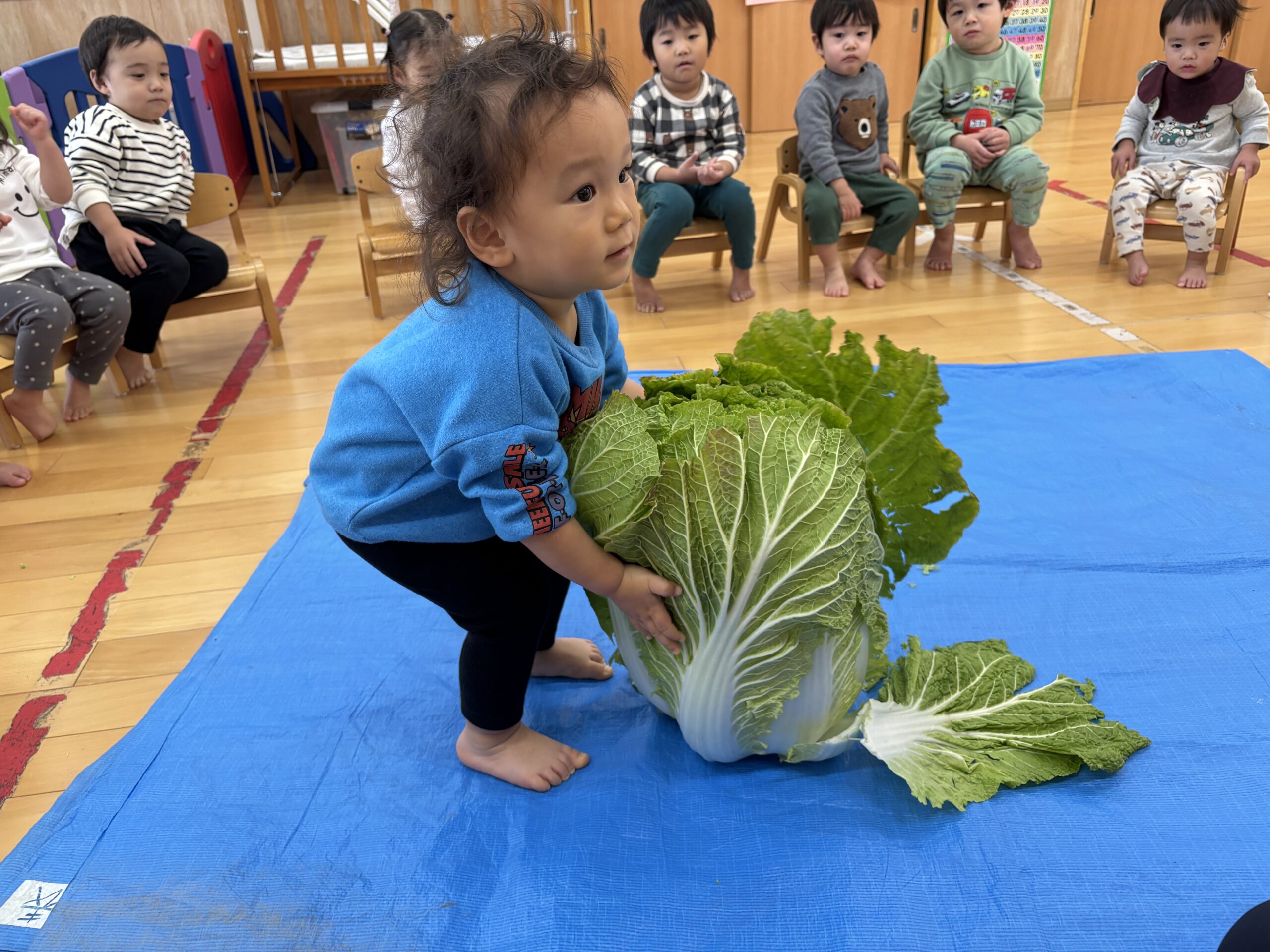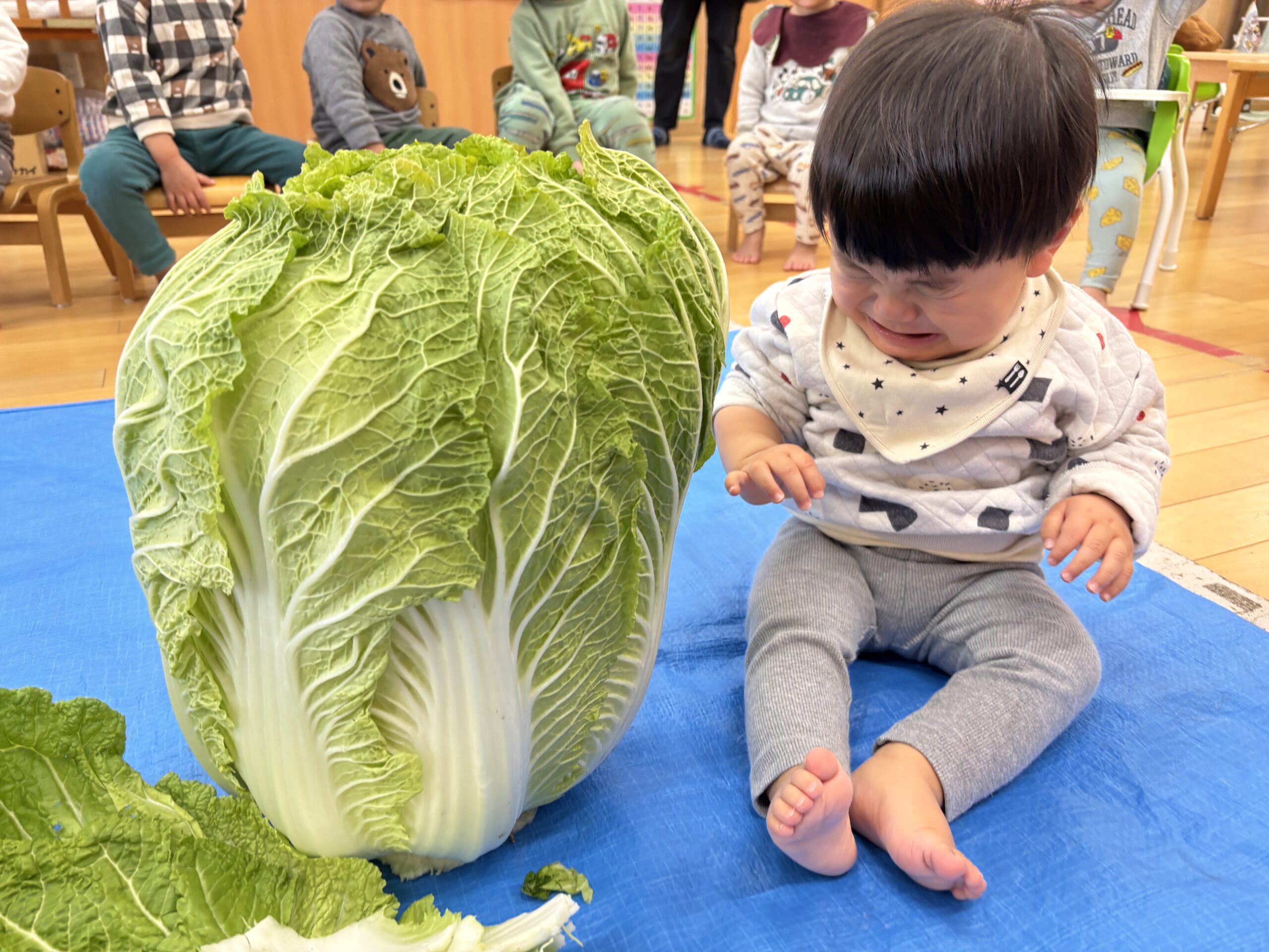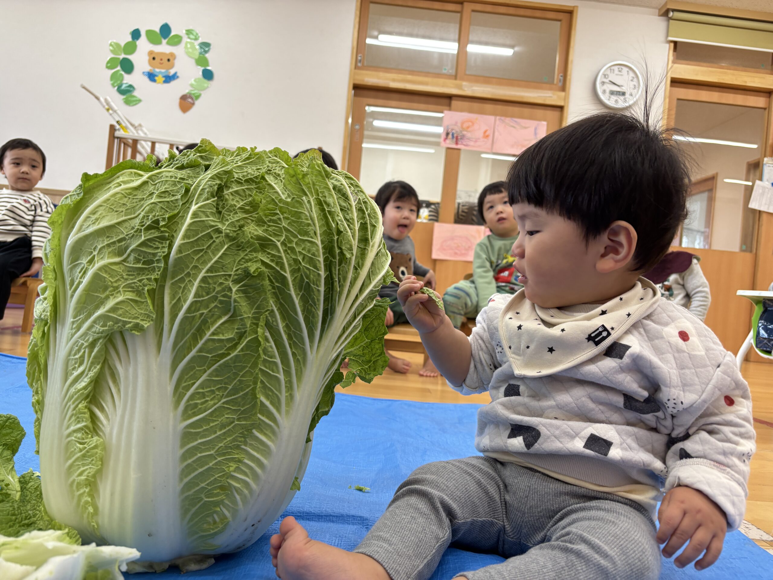 ぼくと同じくらいの大きな白菜!びっくりしたね😭