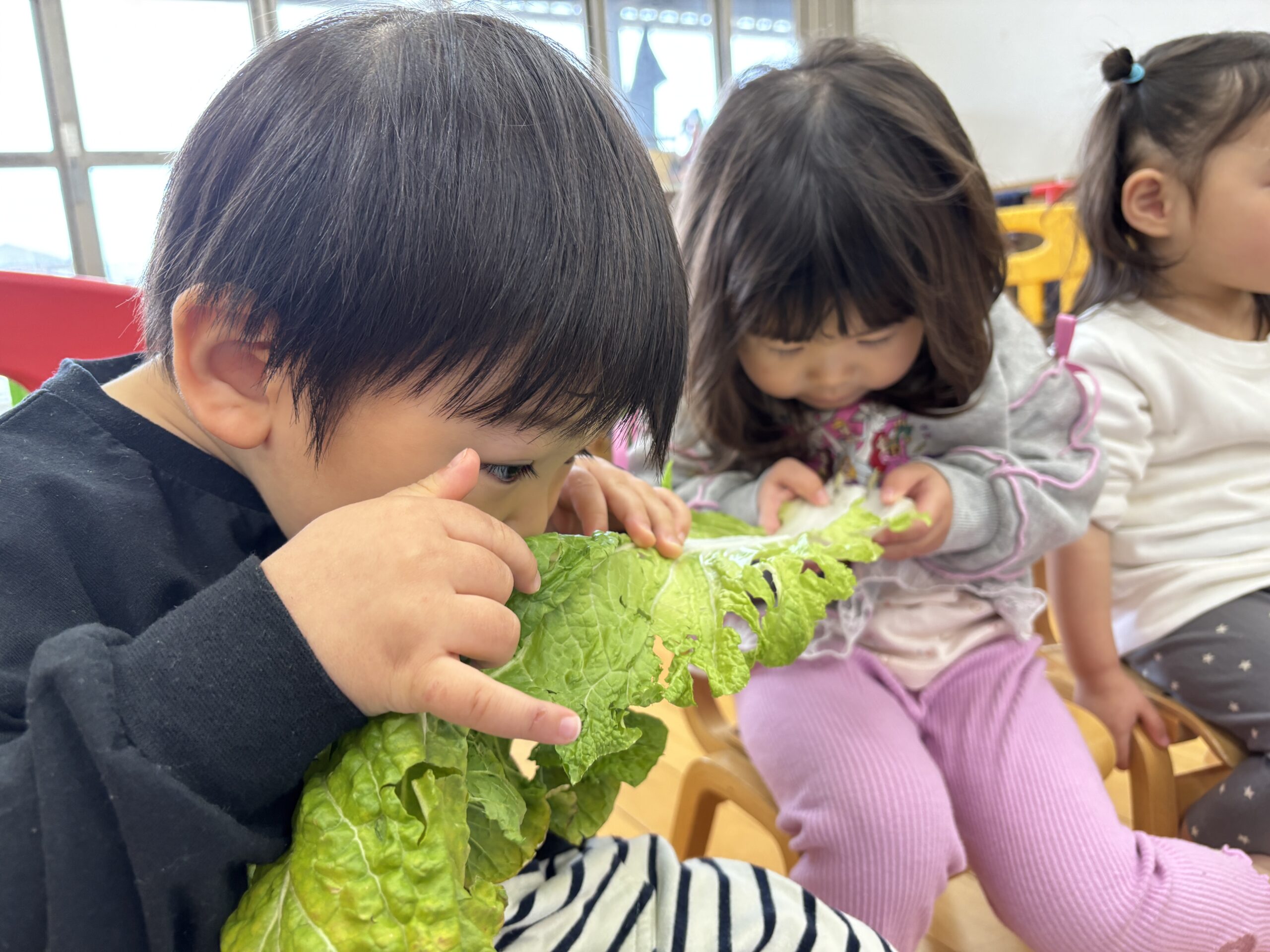 白菜の葉をちぎって匂いを嗅いでみましょう!