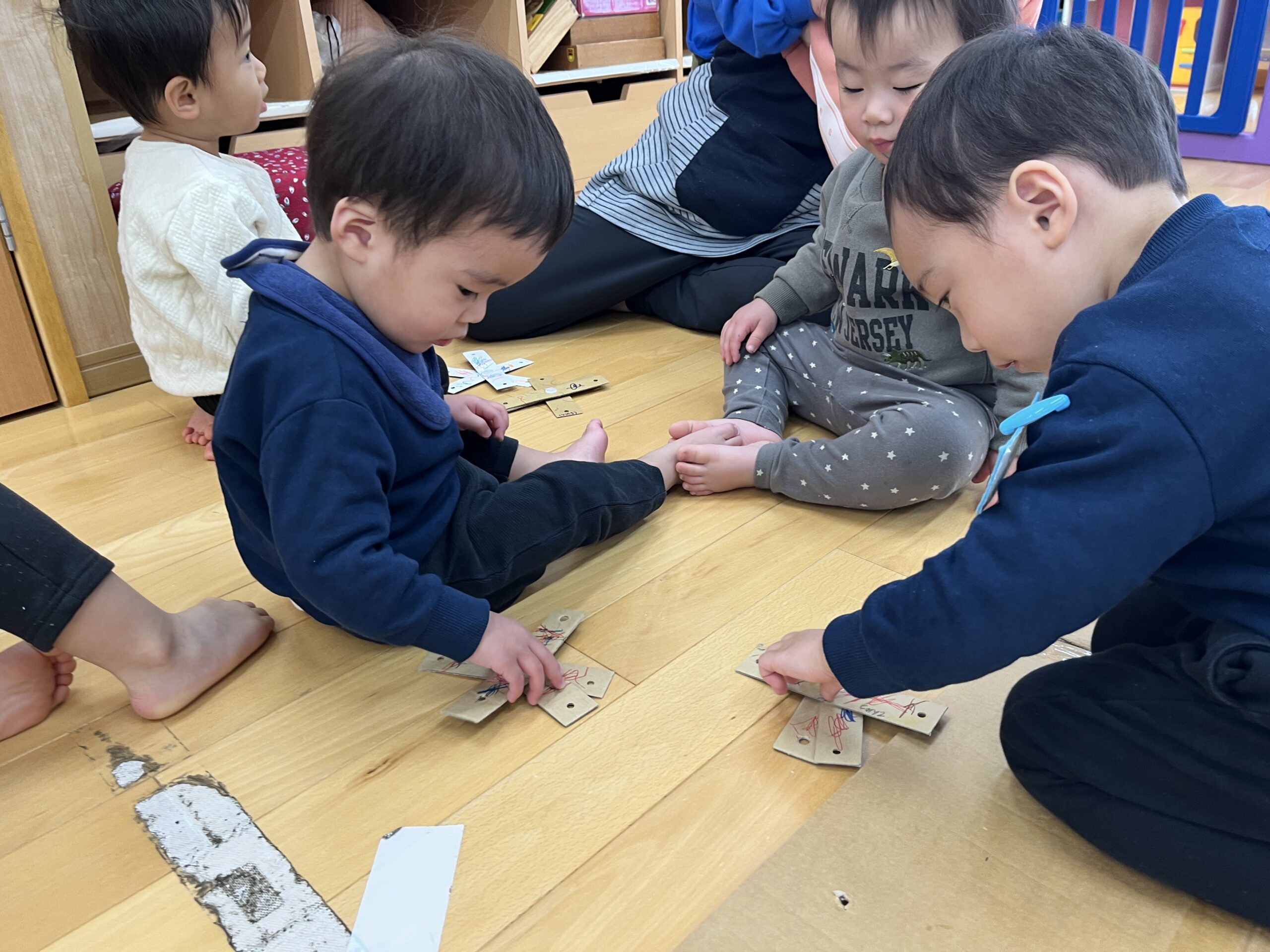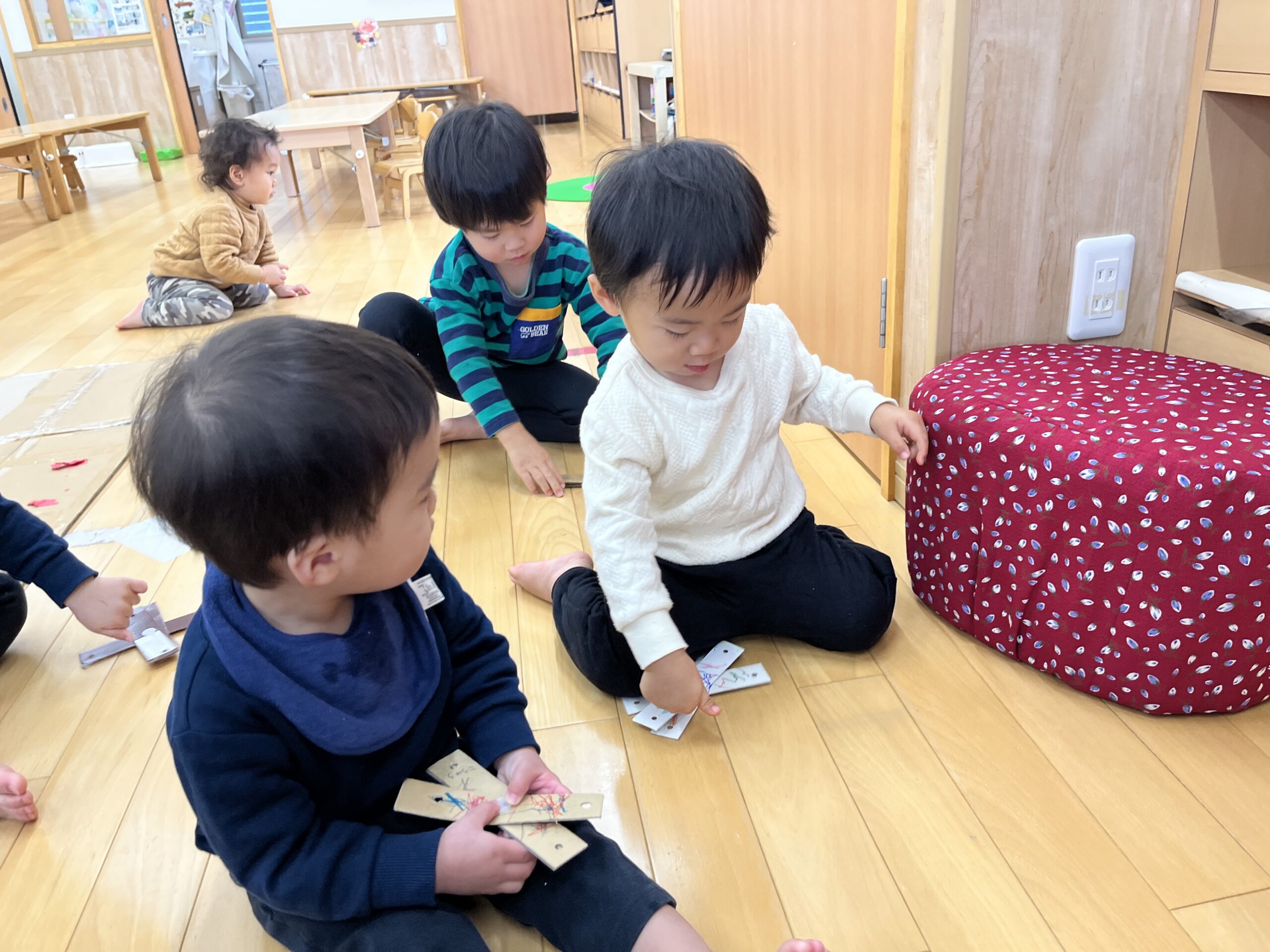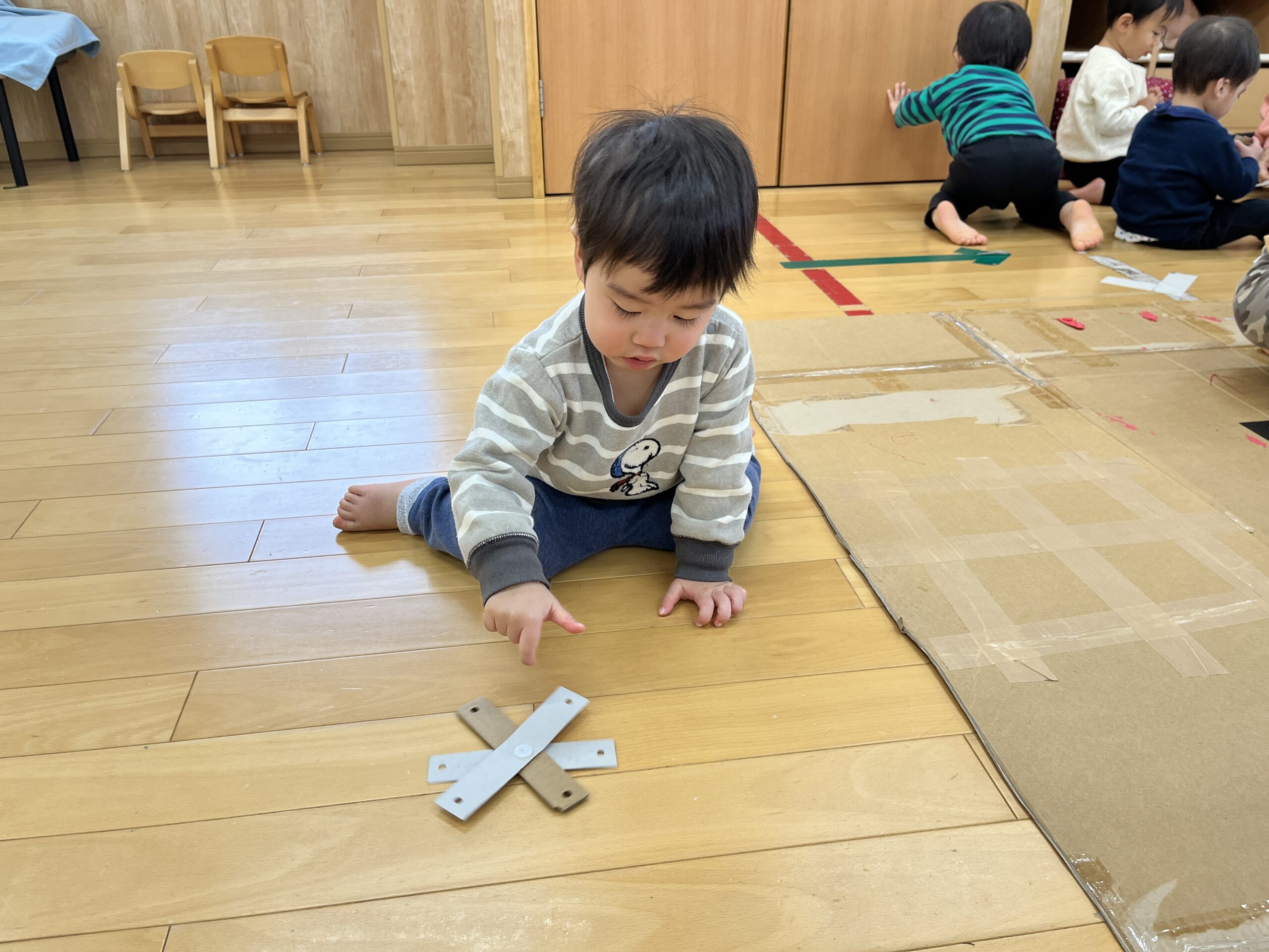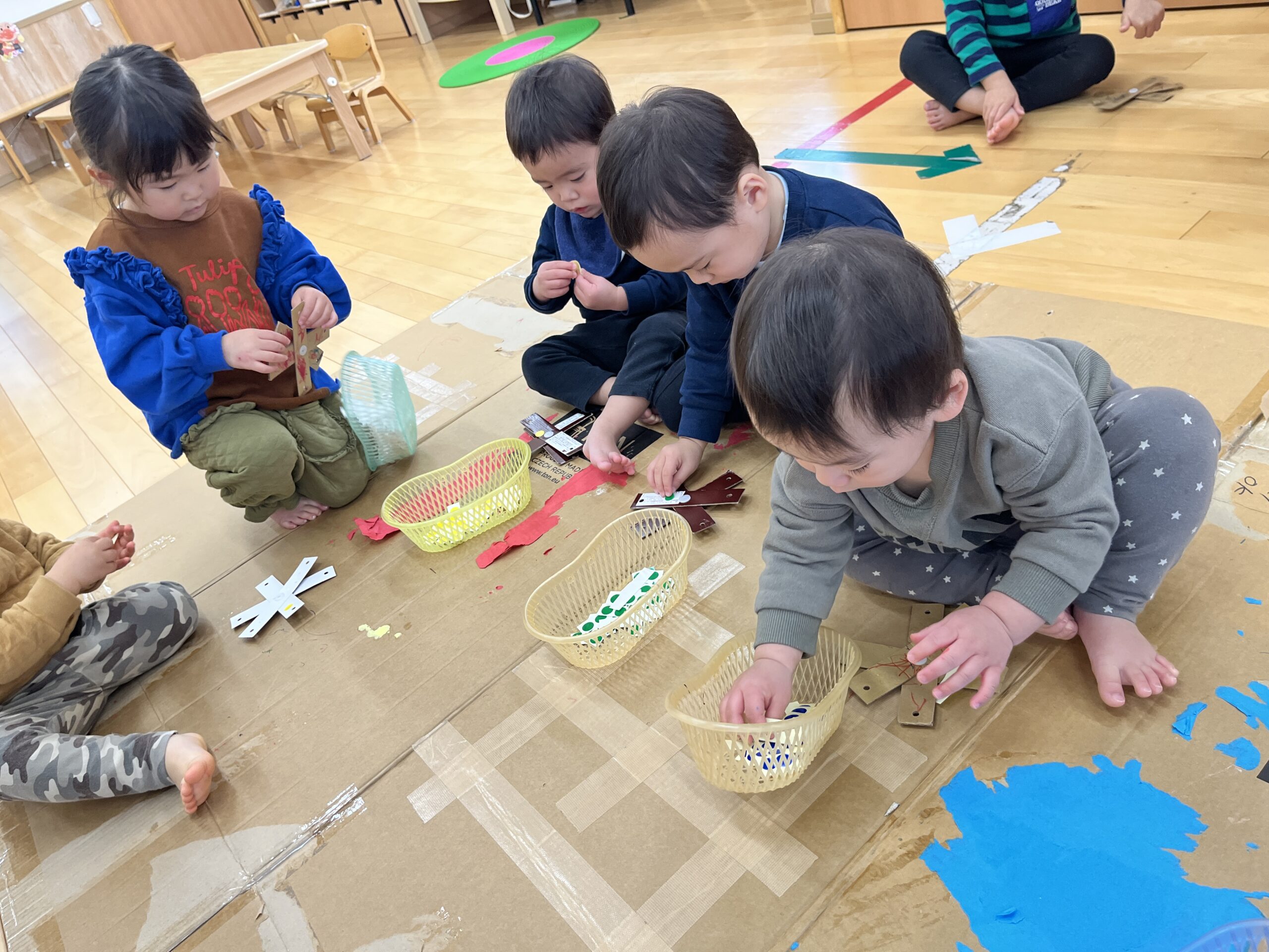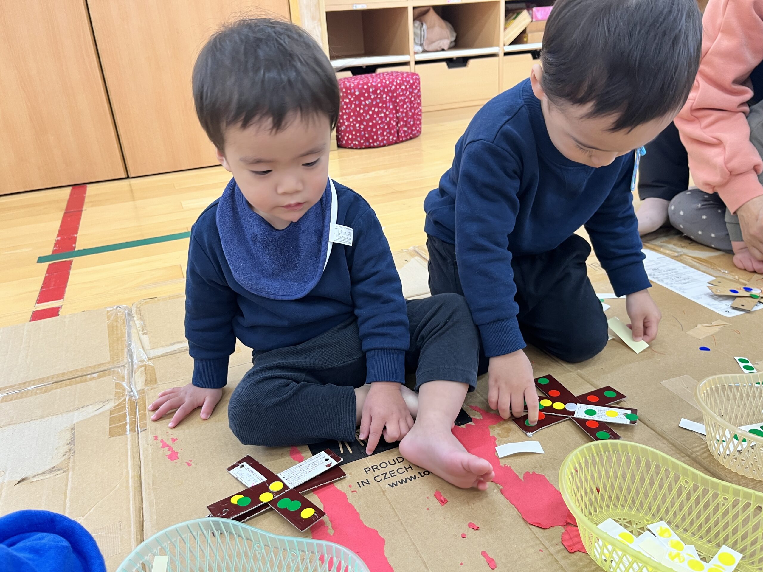 令和8年、最初の遊びはコマ作りです。プラネジで段ボール板を止めて色を付けます🖋