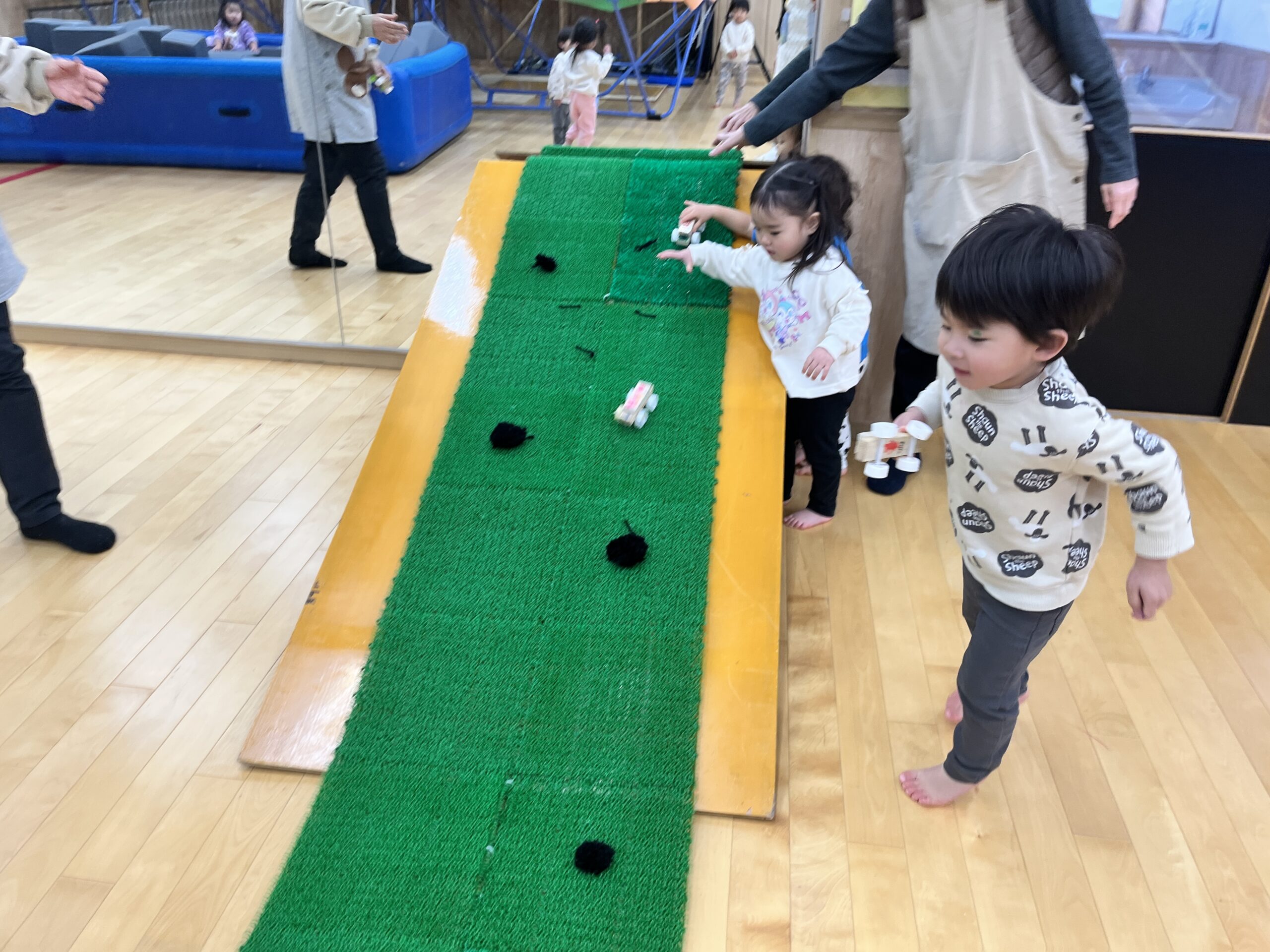 塗装が終わったら、2階のサーキット場で走らせましょう‼ レディーGO~~~~🏁