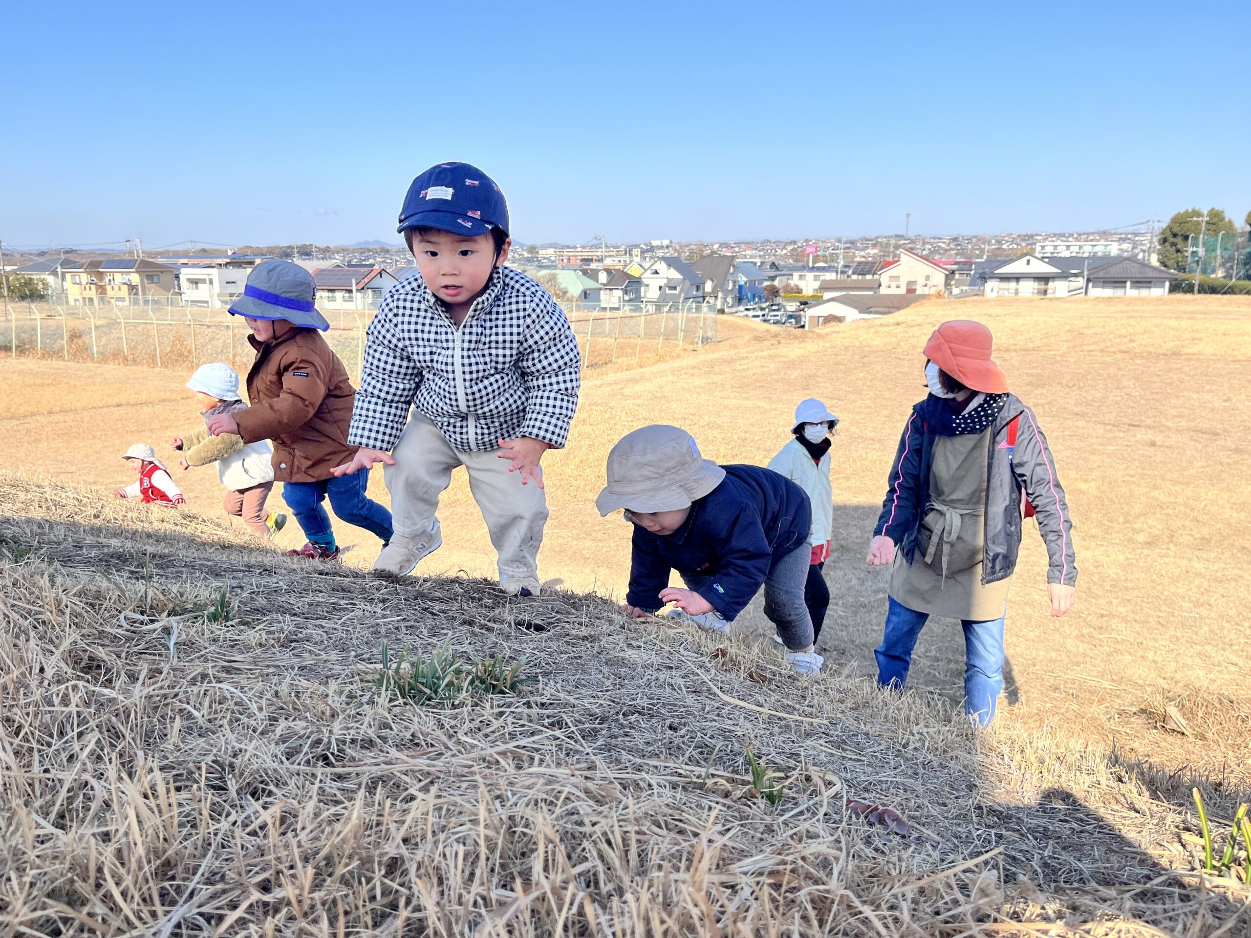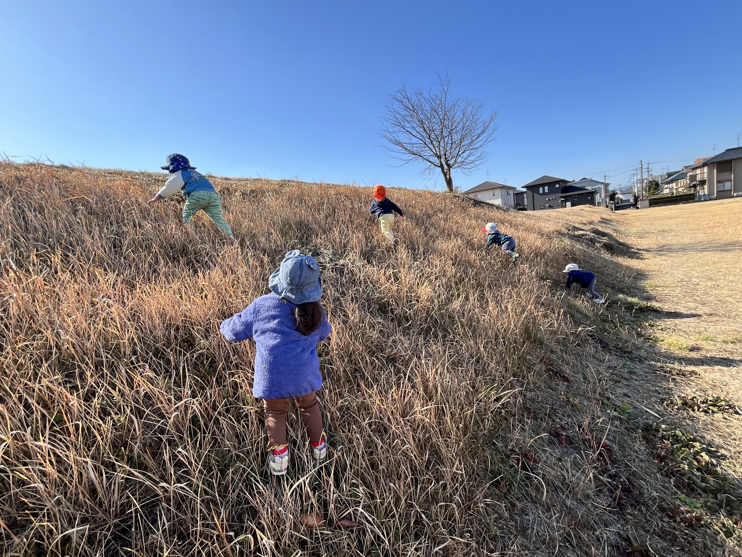 園前の草原で遊びました
