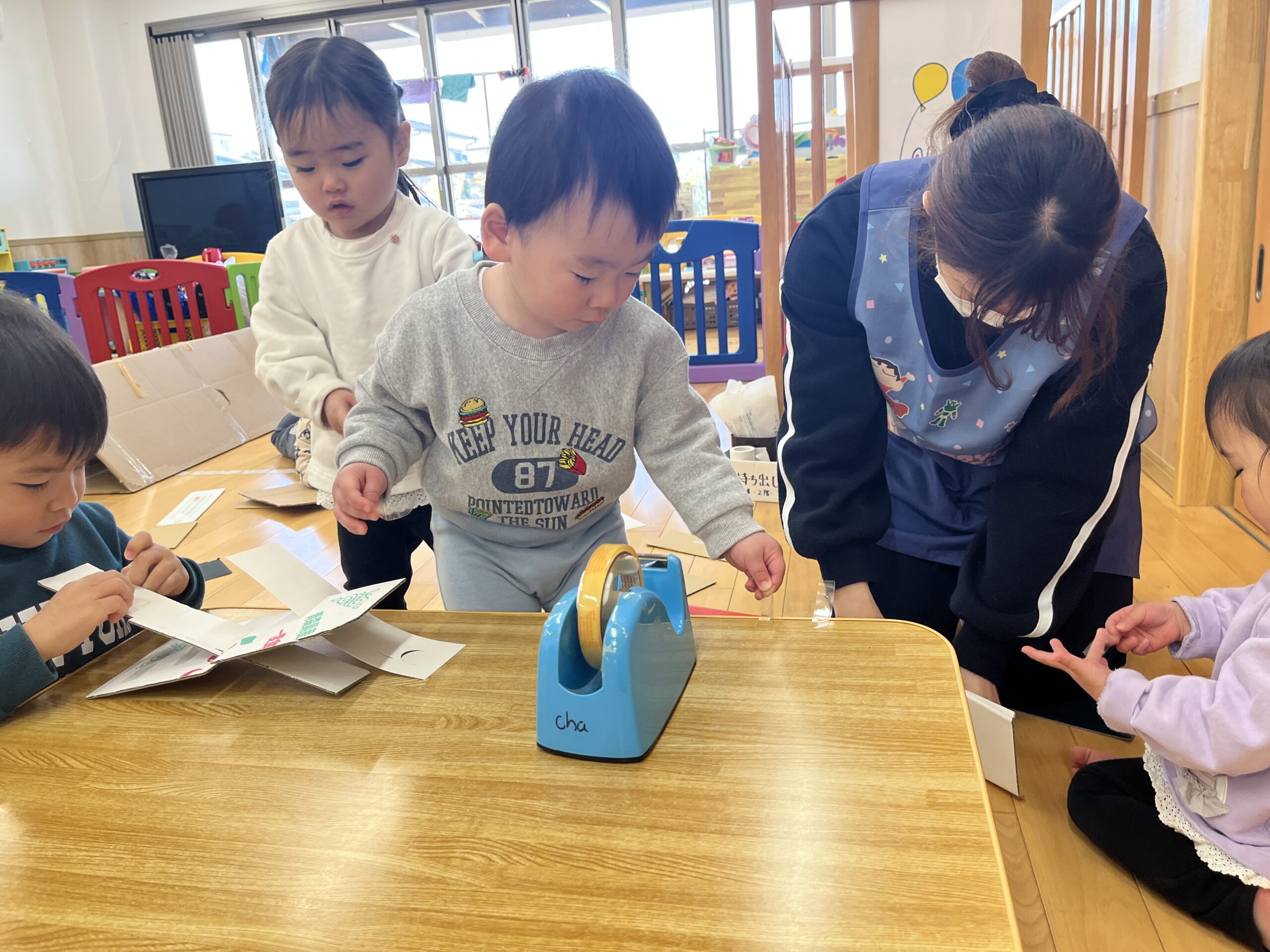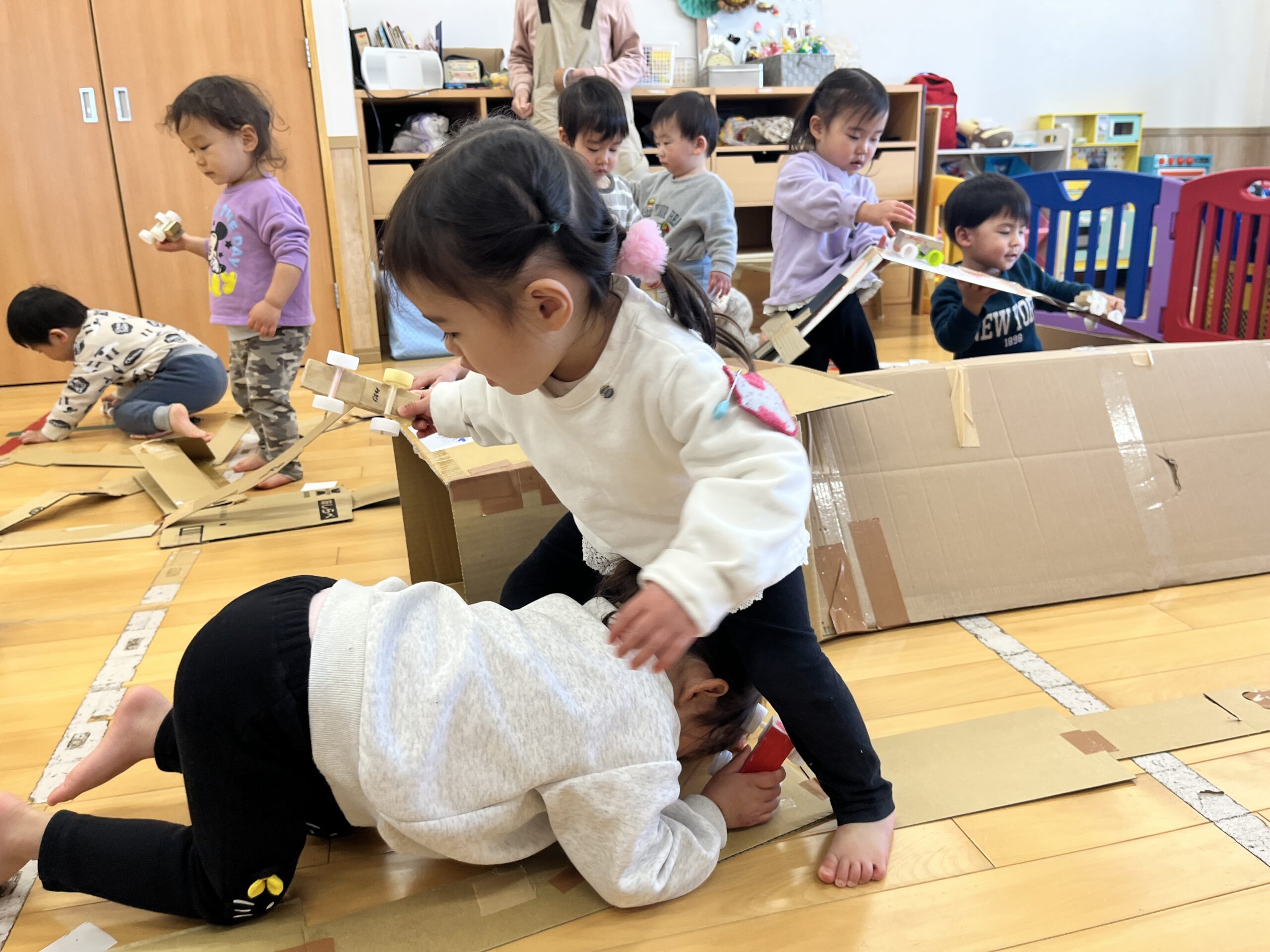 お友達と協力して進めます