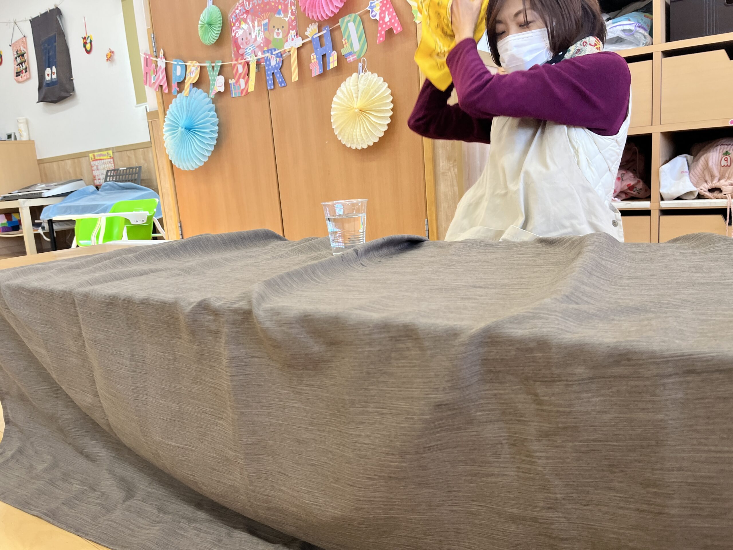透明になったり、布と同じ赤、青、黄になったり、びっくりです😲