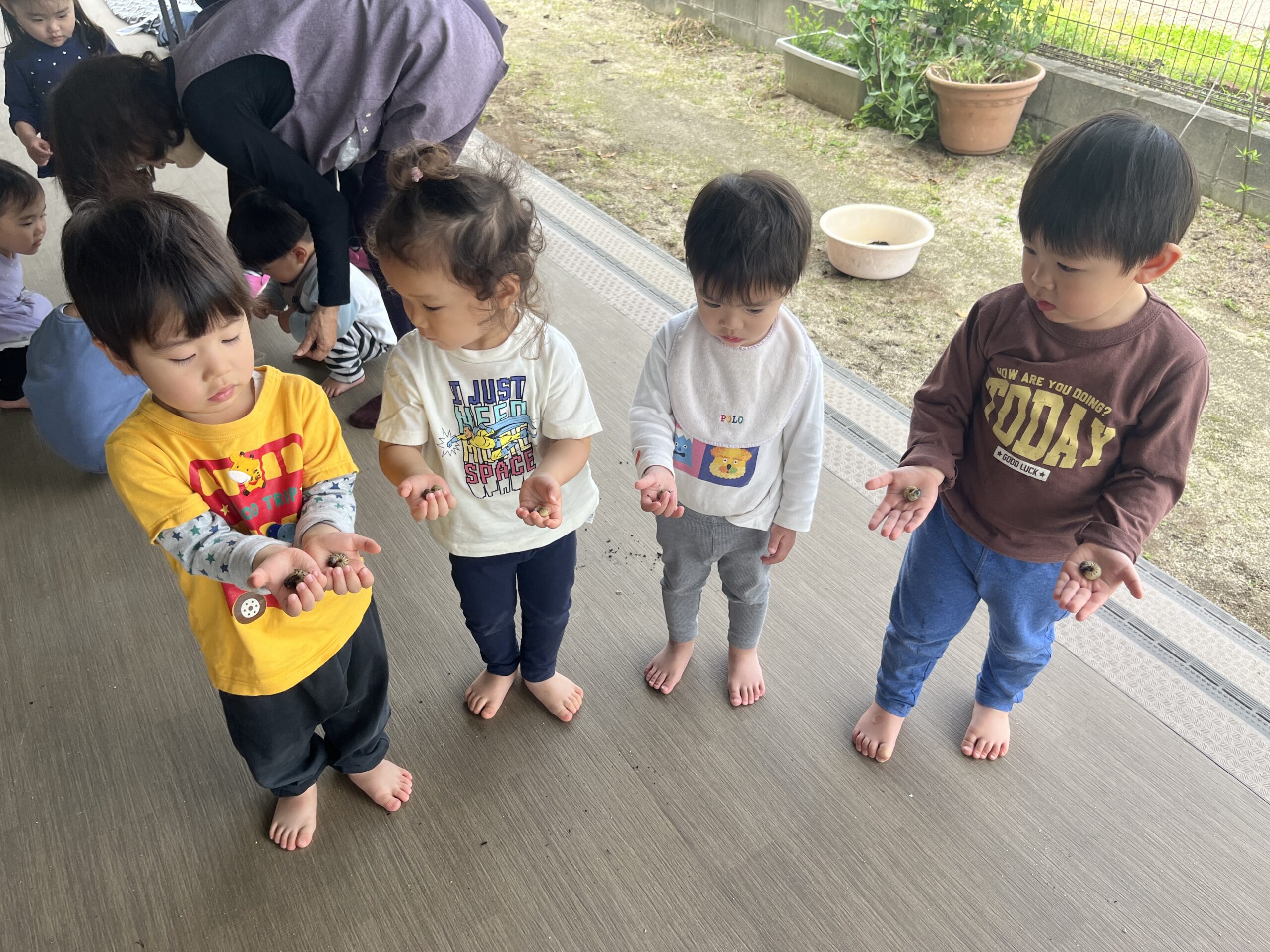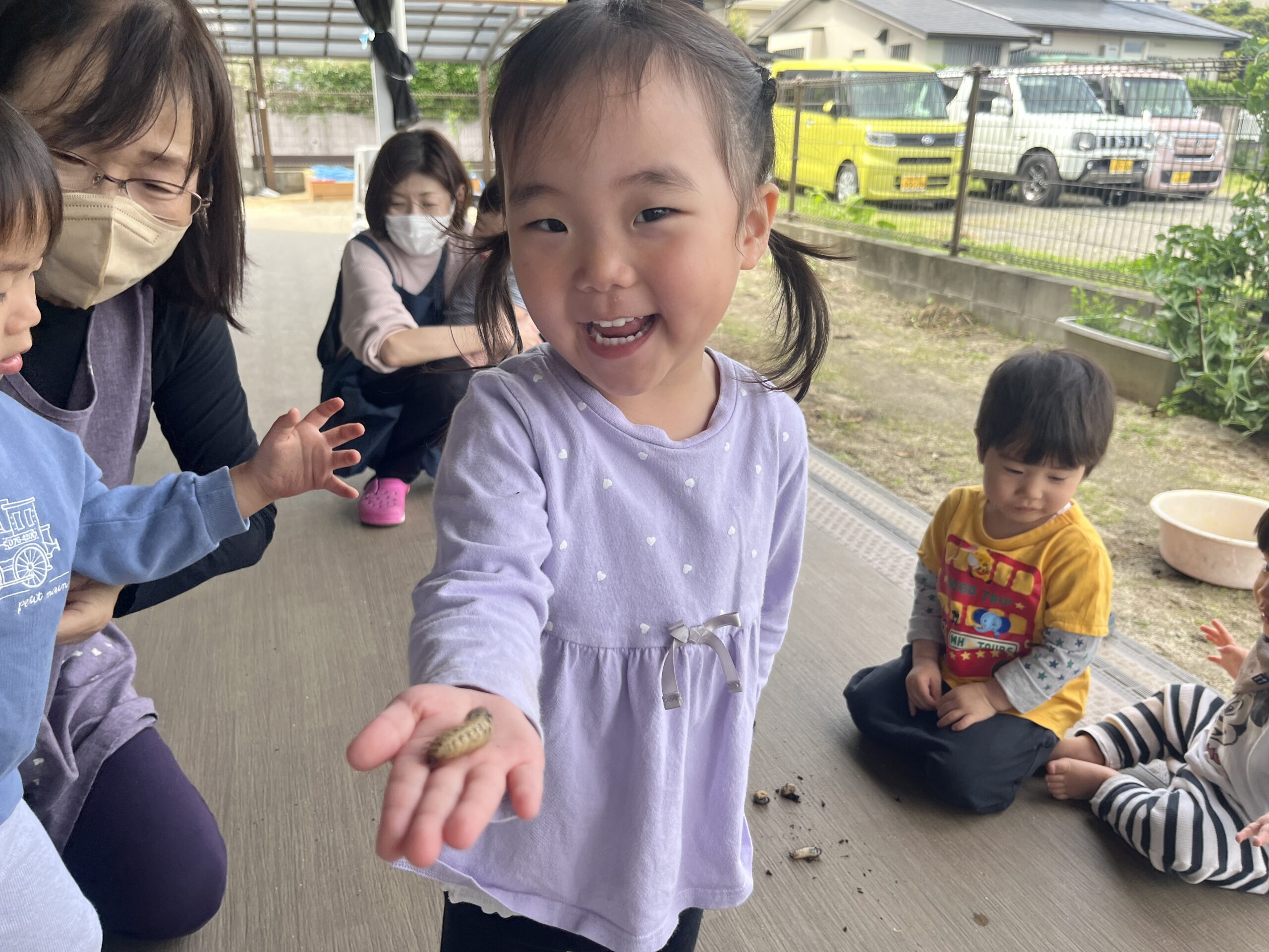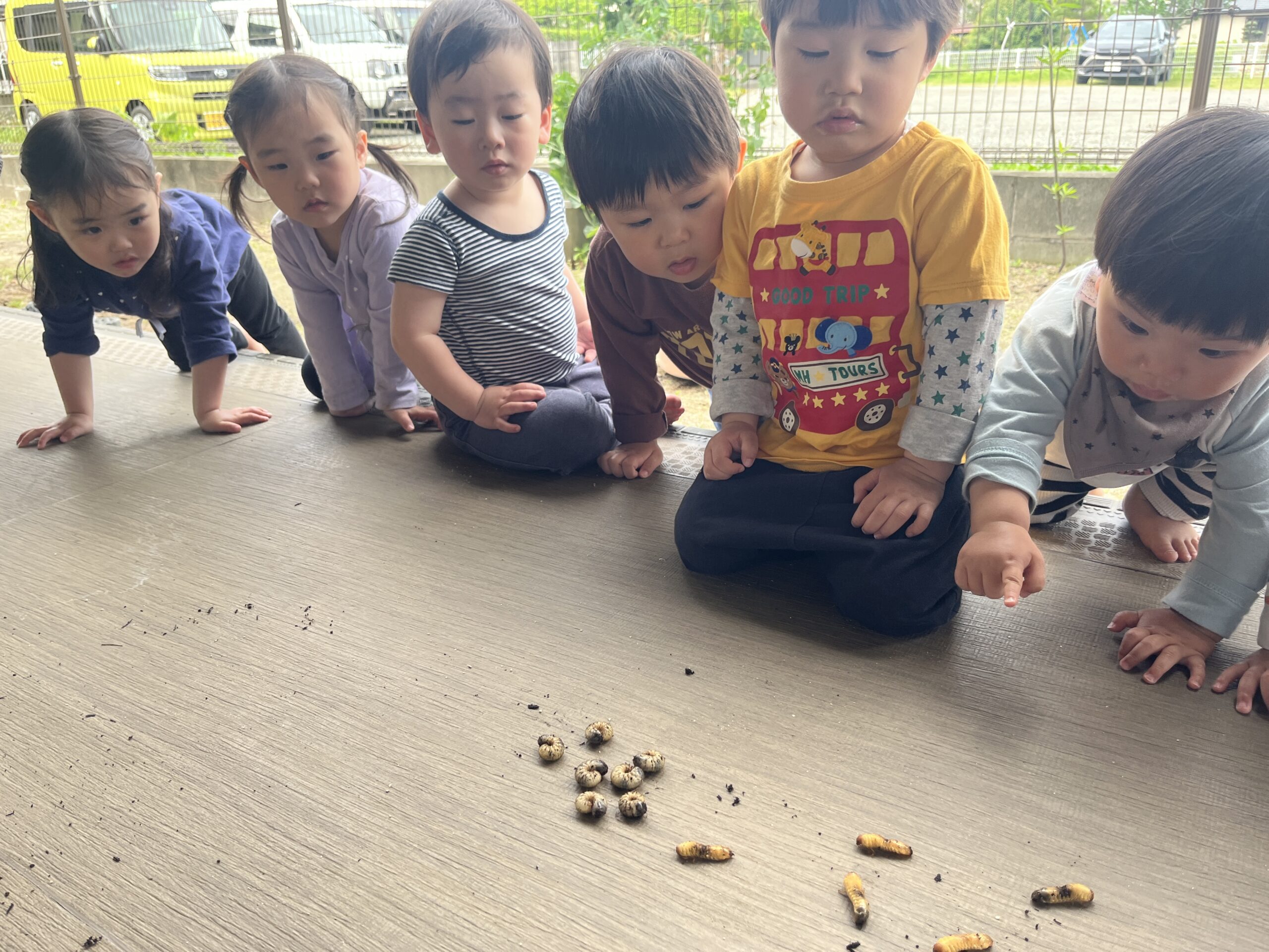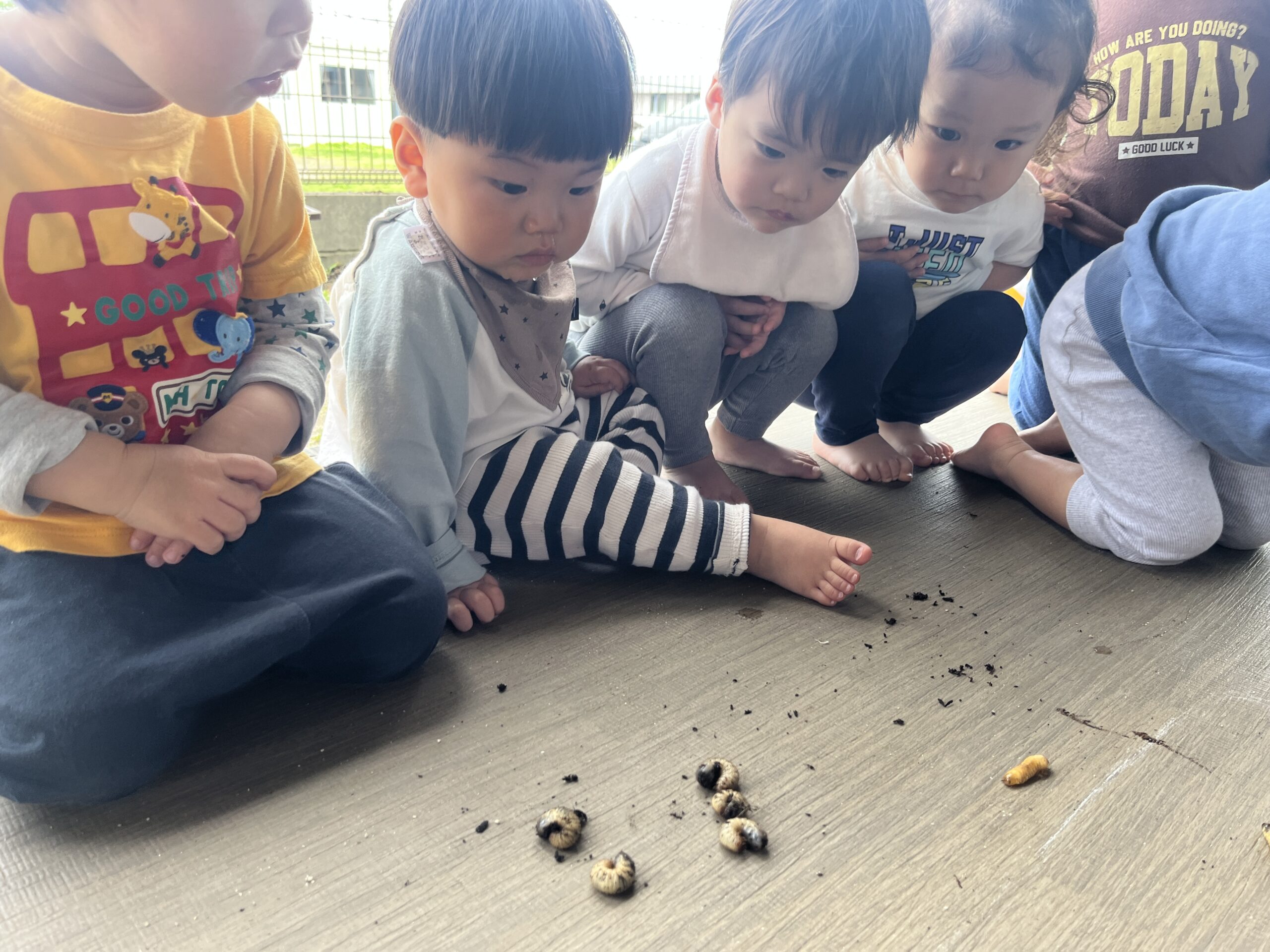 プランターの土替えをしていたら、沢山の幼虫が出てきました。二種類いますね🐛